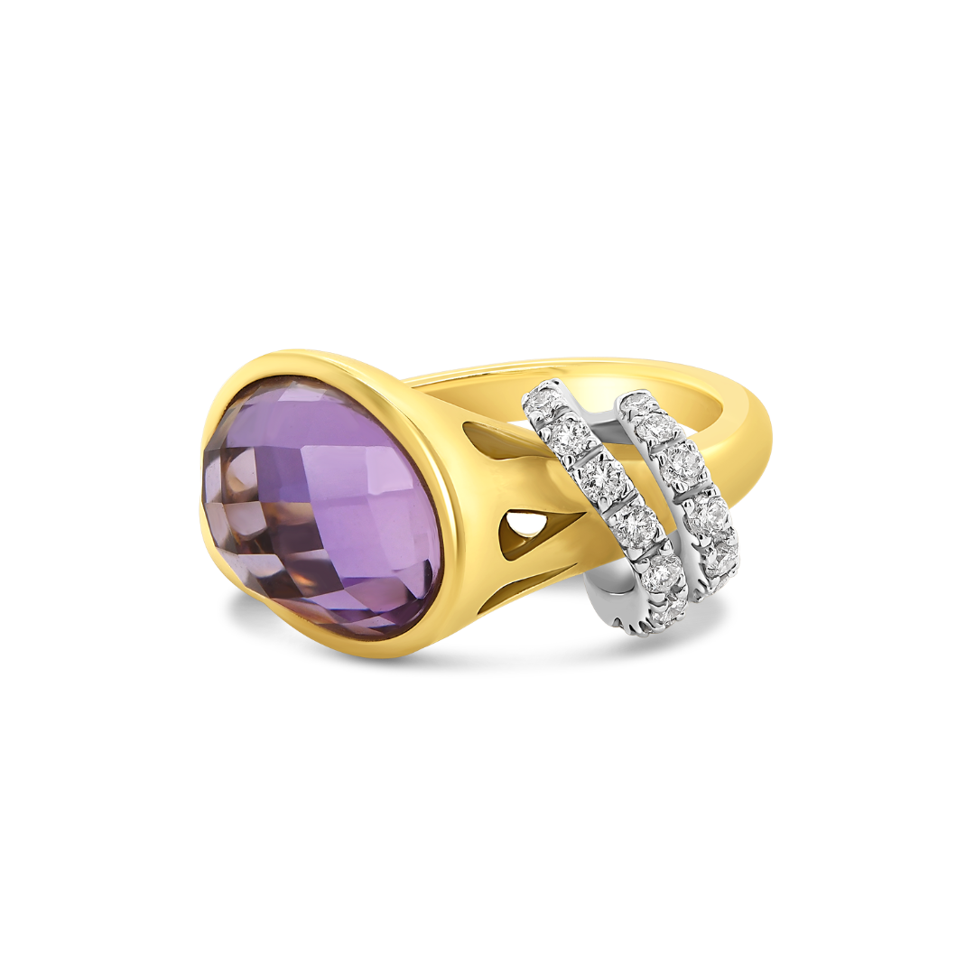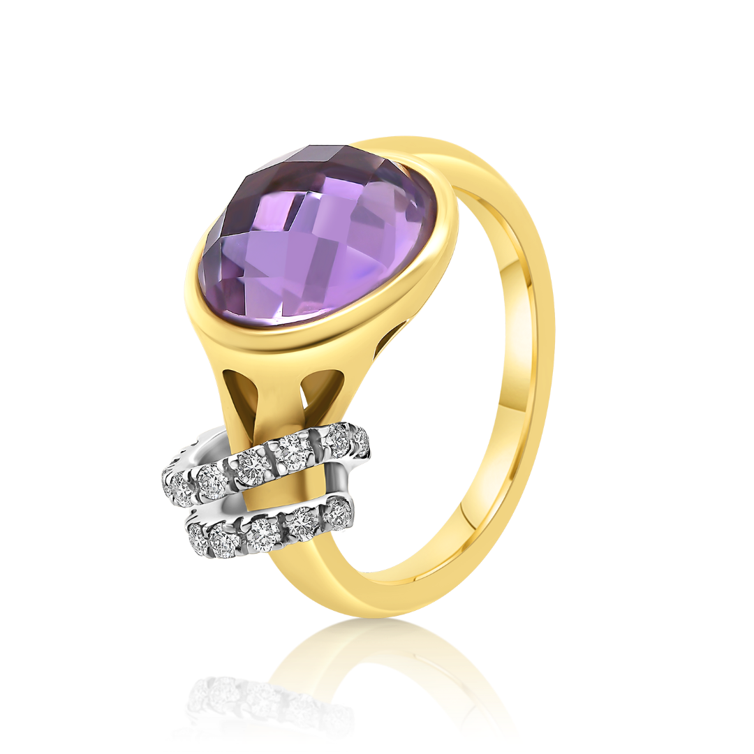 Inel din aur galben de 18K cu Ametist și Diamante naturale.