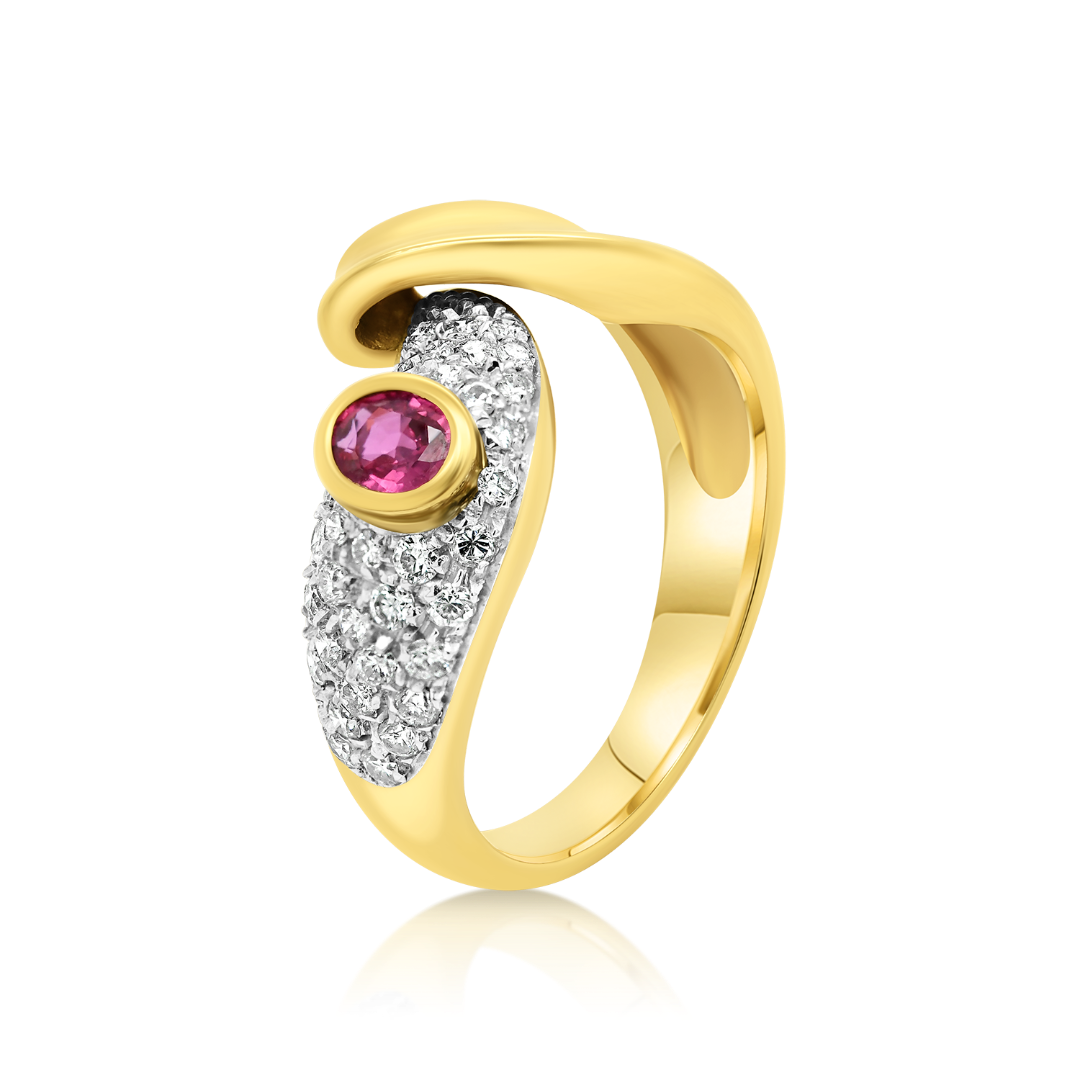 Inel din aur galben de 18K, cu un Rubin și Diamante Round Brilliant.