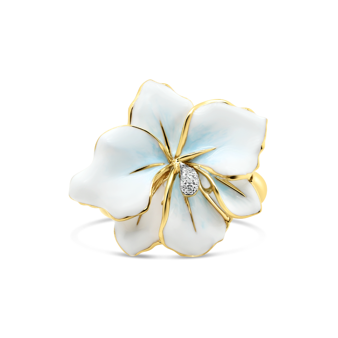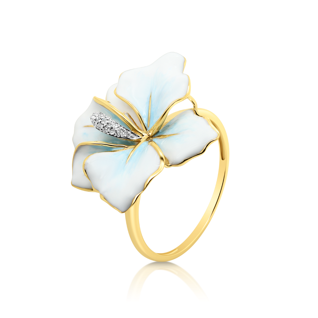 Inel din aur galben de 18K cu 14 Diamante naturale și Email.