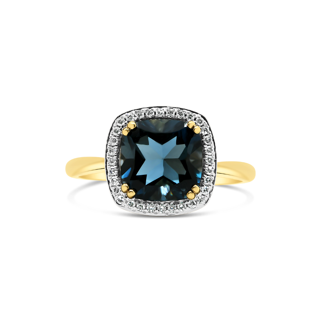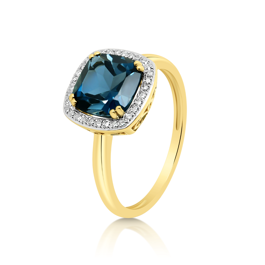 Inel din aur galben de 18K cu London Blue Topaz de 2.809ct. și Diamante naturale.