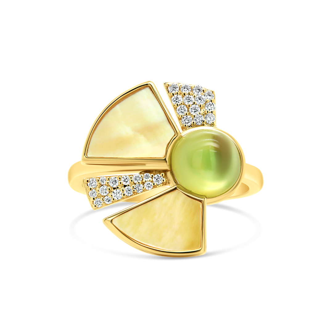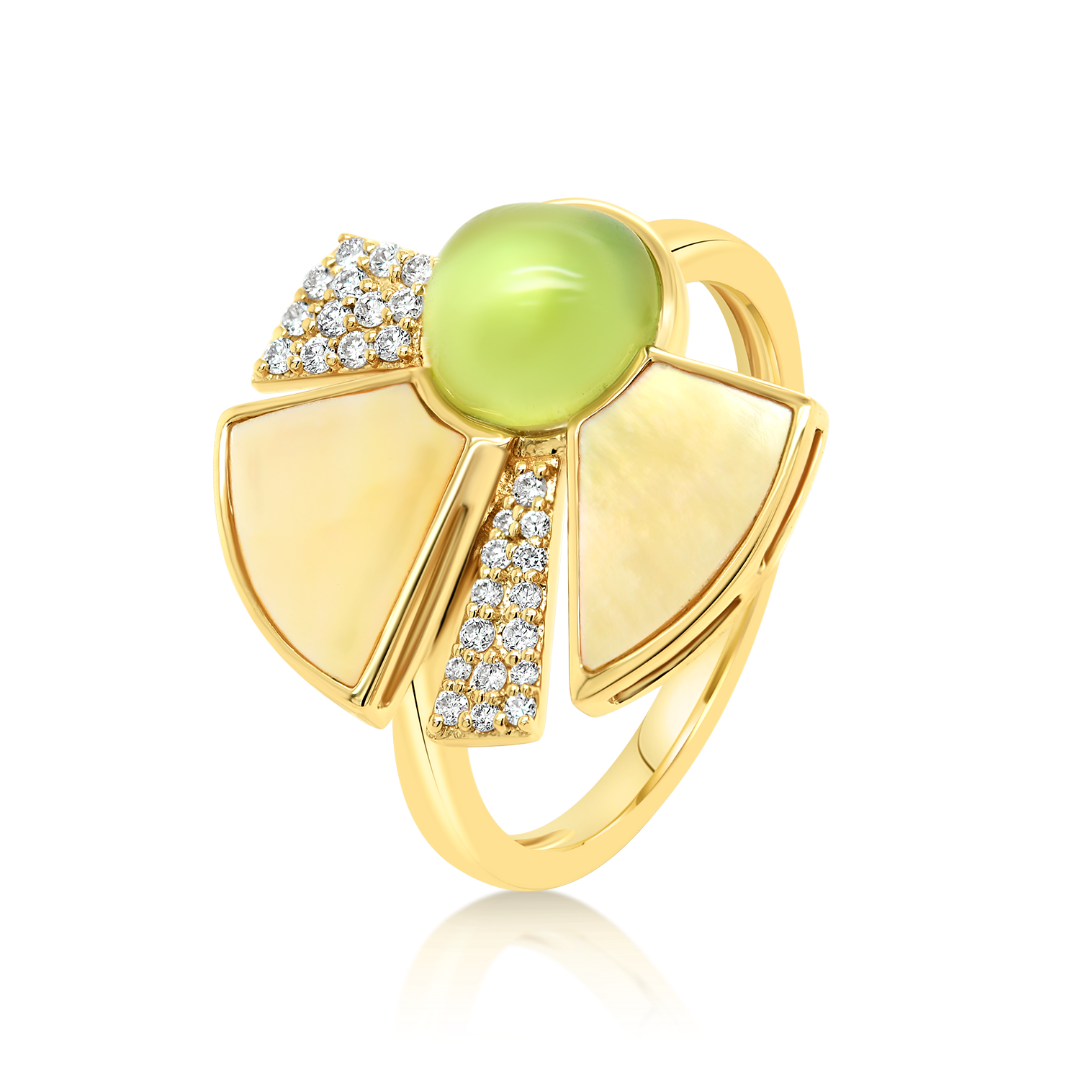 Inel din aur galben de 18K cu Sidef de culoare verde și galben și Diamante naturale.