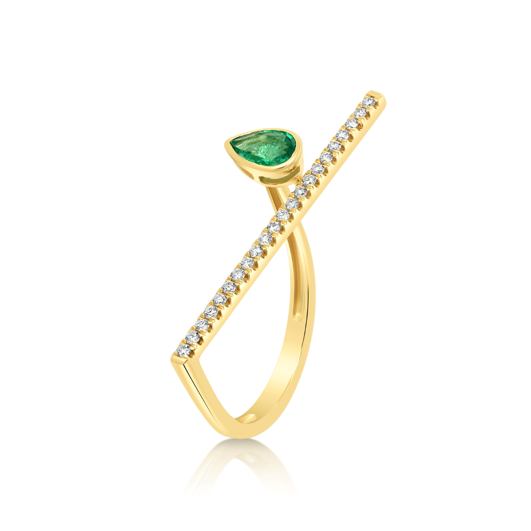 Inel din aur galben de 18K încrustat cu un Smarald și 22 de Diamante Brilliant cut.