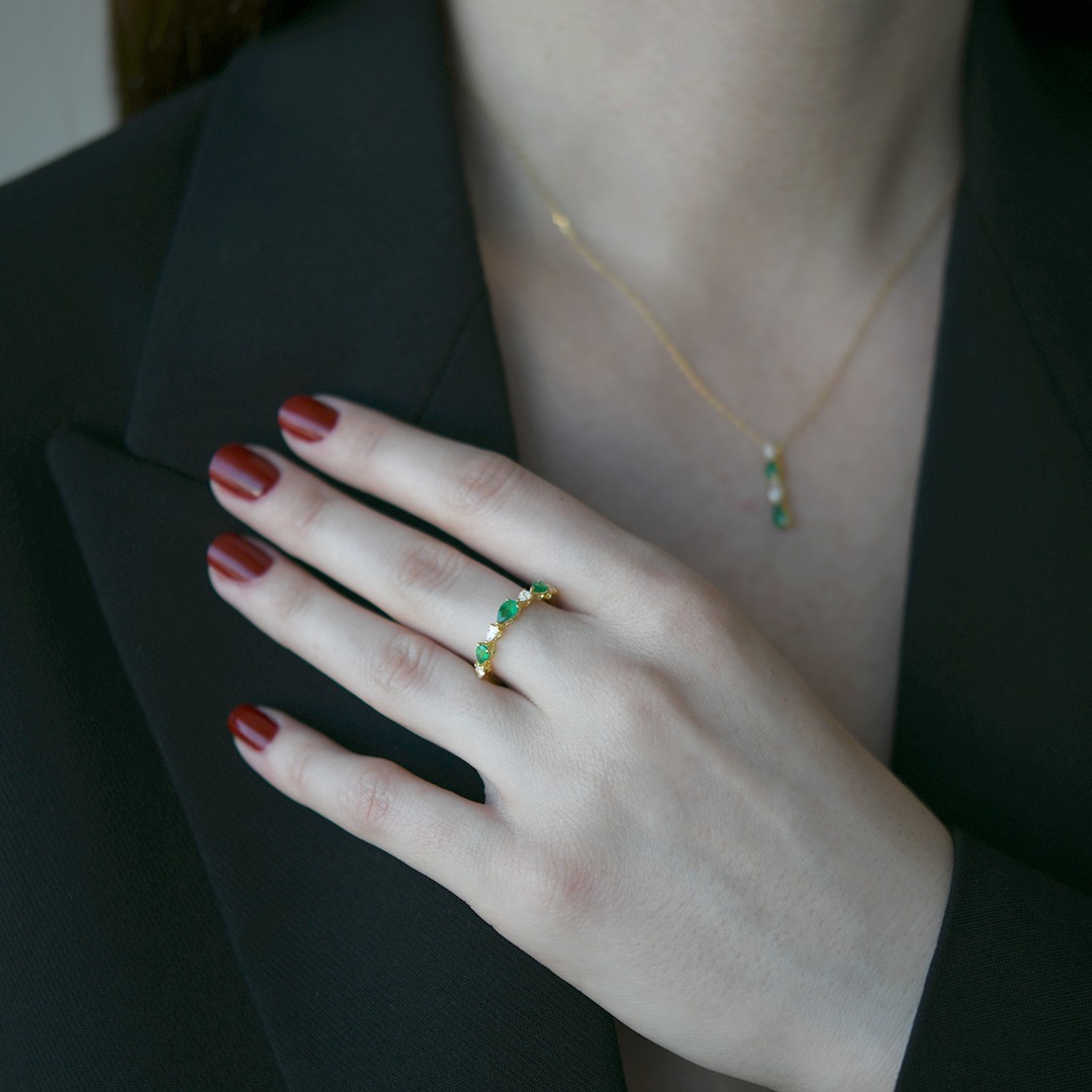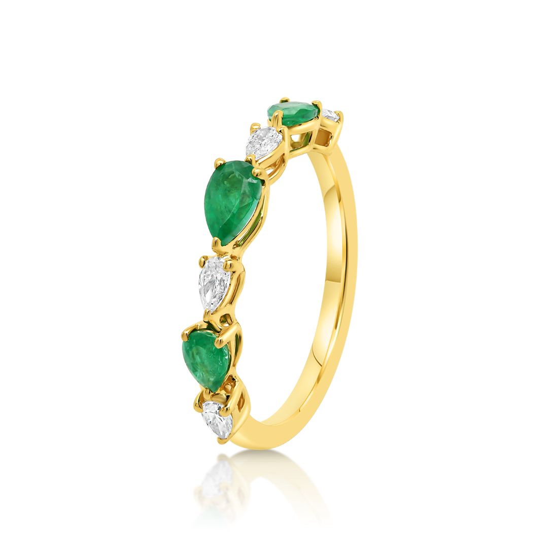 Inel din aur galben de 18K cu 3 Smaralde și 4 Diamante naturale.