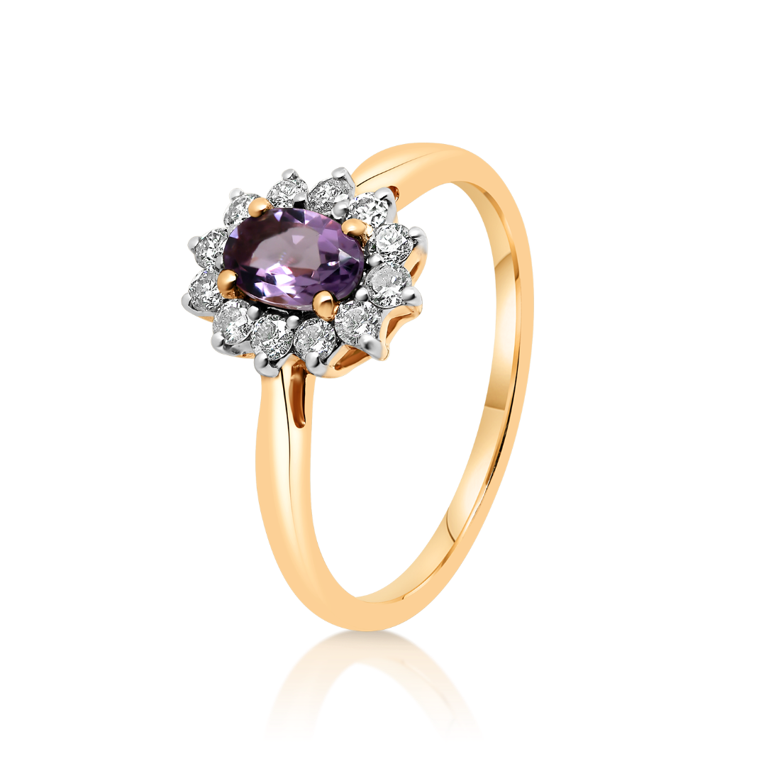 Inel din aur roz de 18K, cu Ametist și Diamante naturale.