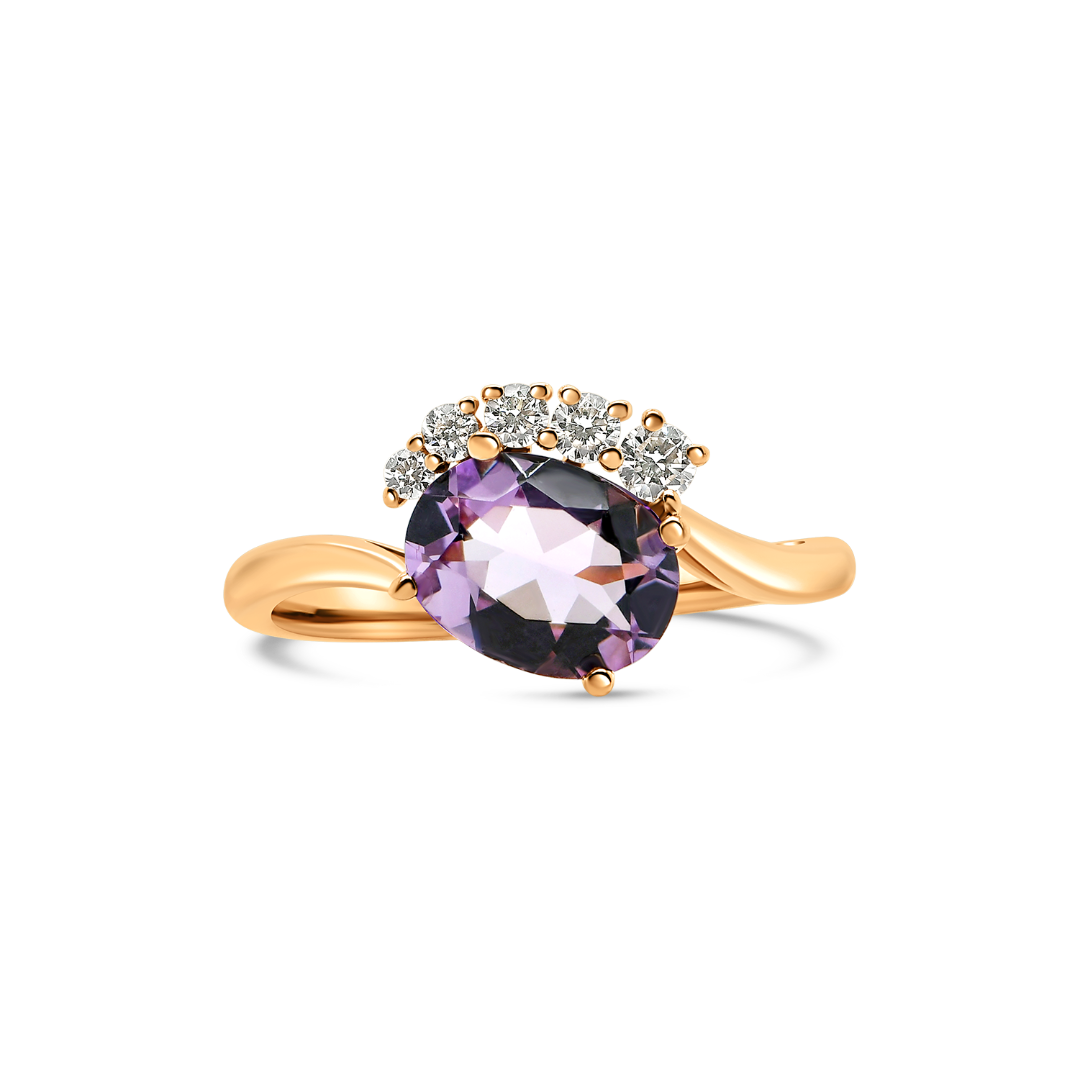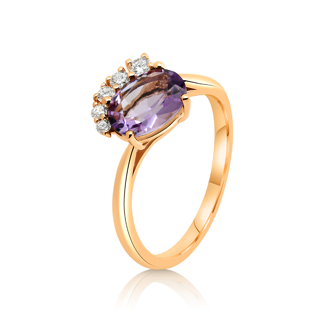 Inel din aur roz de 18K cu un Ametist și 5 Diamante Round Brilliant.