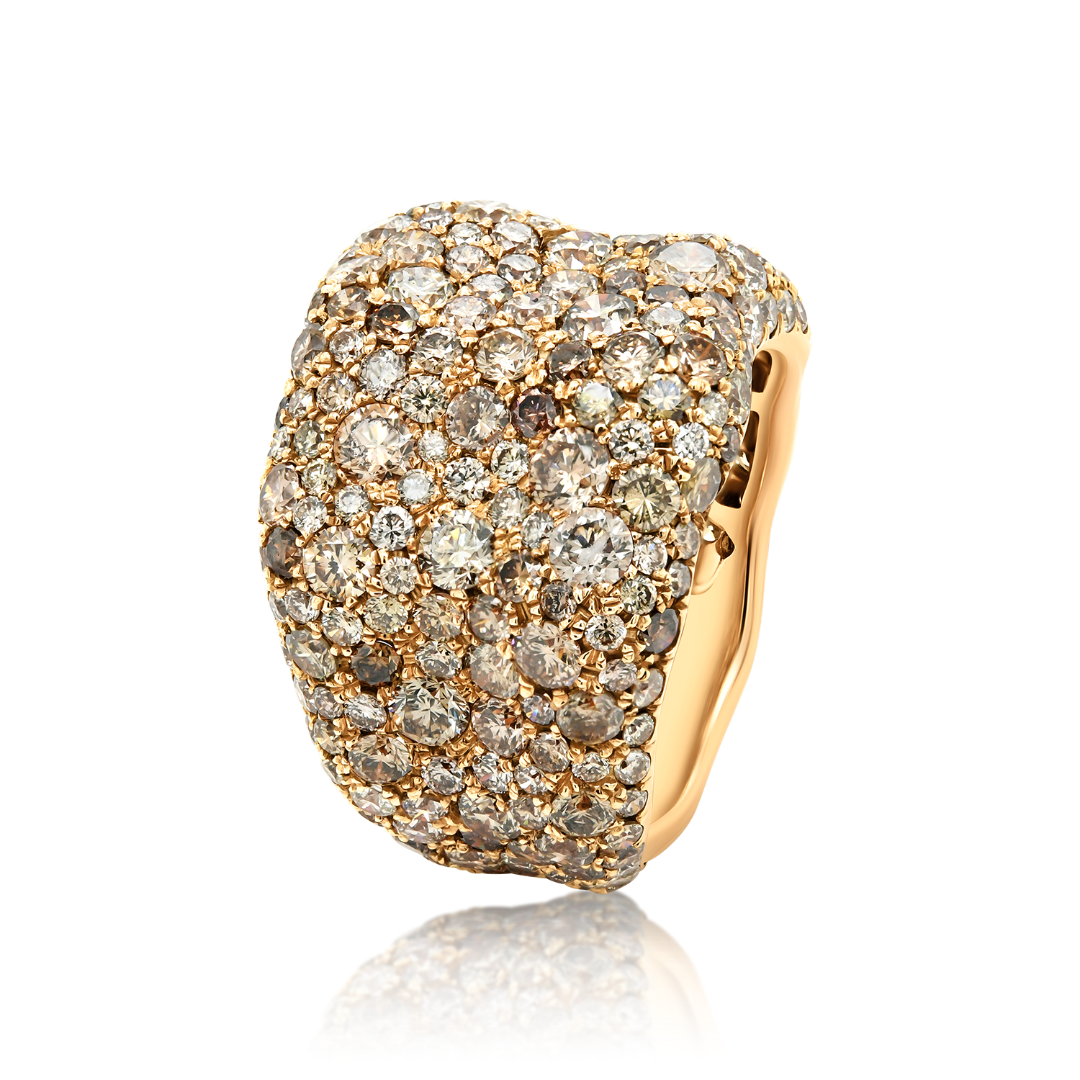 Inel din aur roz de 18K încrustat cu Diamante naturale Champagne de 6.07ct.