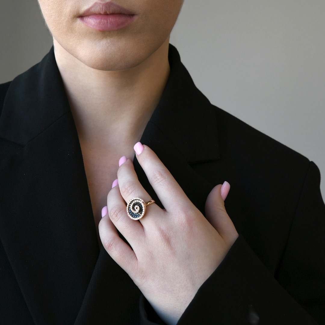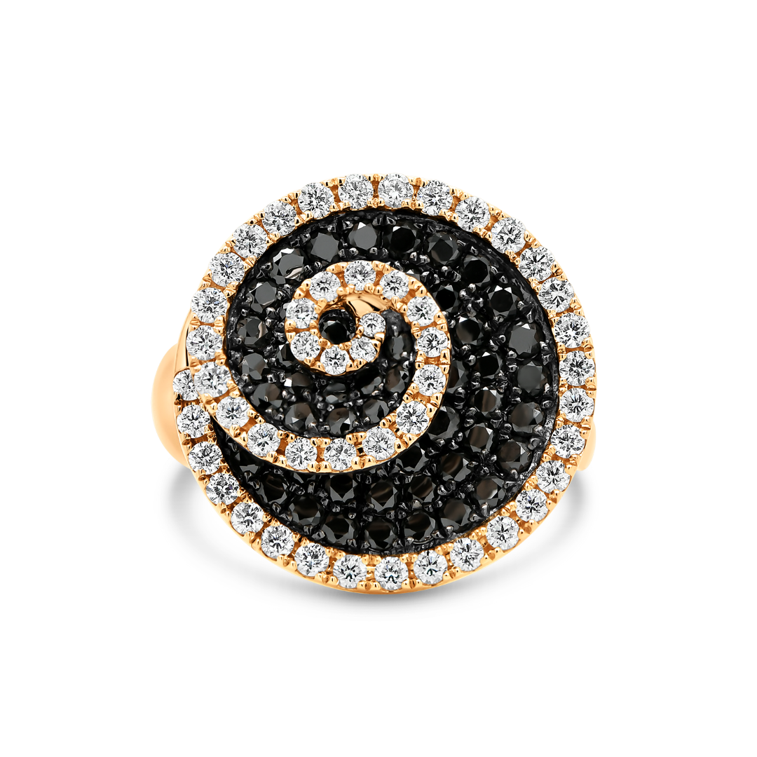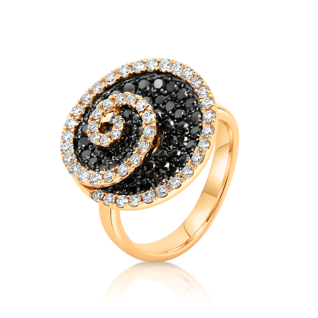 Inel din aur roz de 18K, încrustat cu 49 de Diamante incolore de 0.62ct și 58 de Diamante negre de 1.10ct.