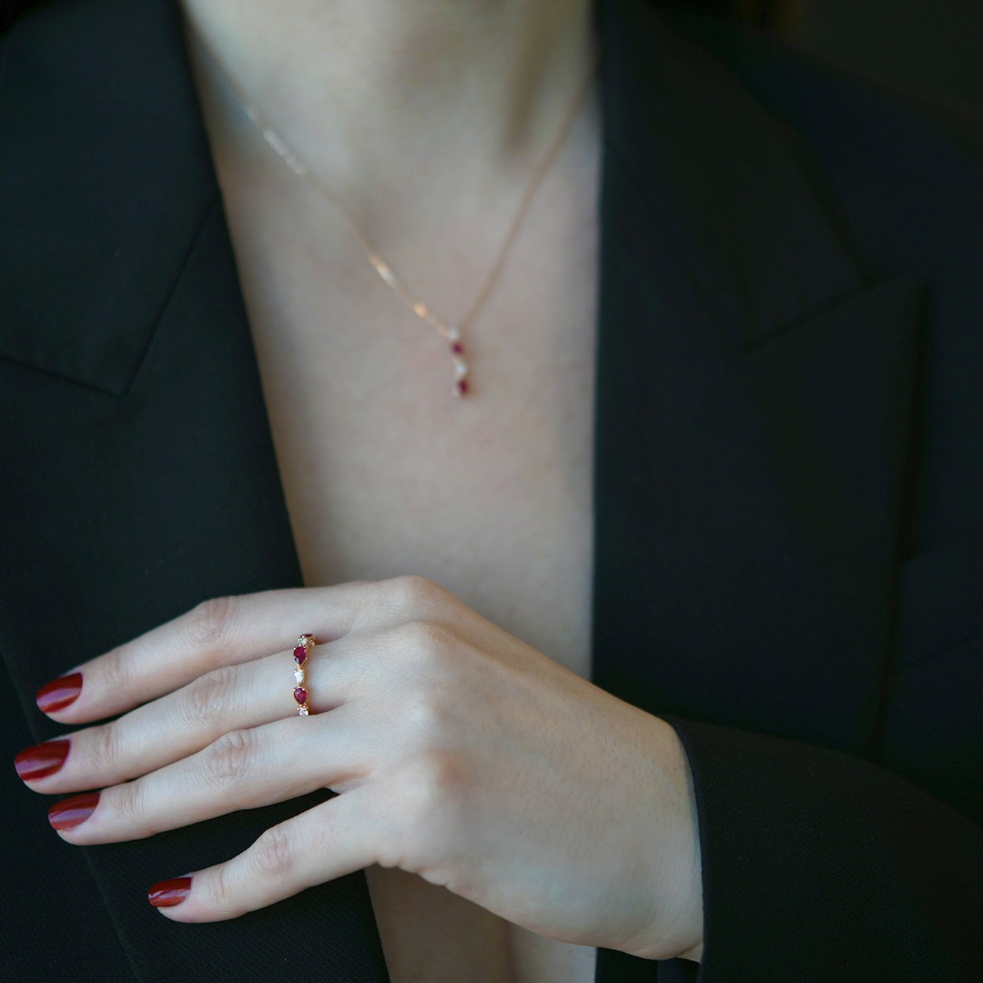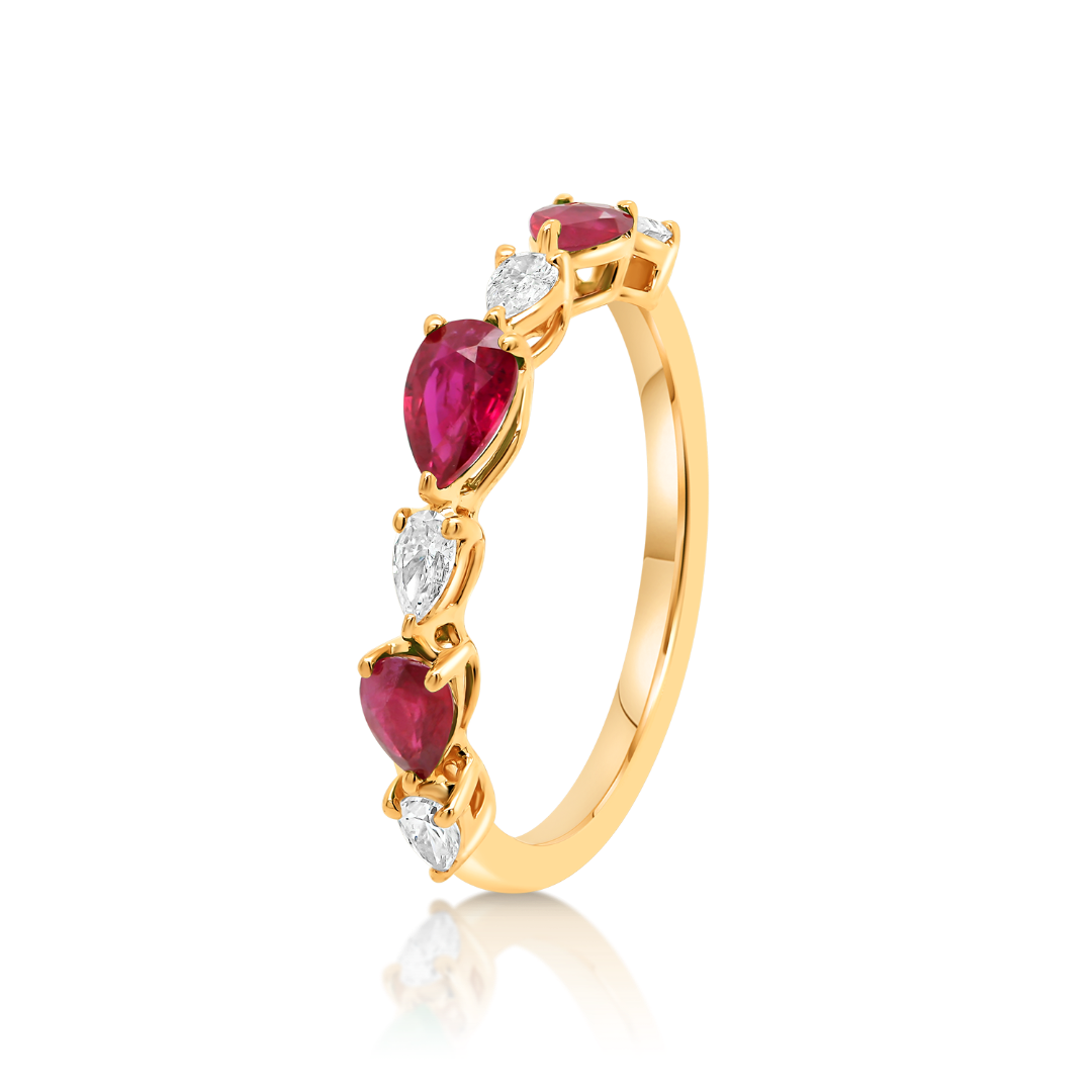 Inel din aur roz de 18K cu Rubine și Diamante naturale.
