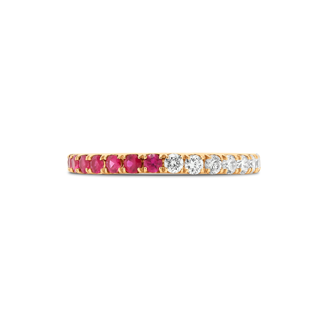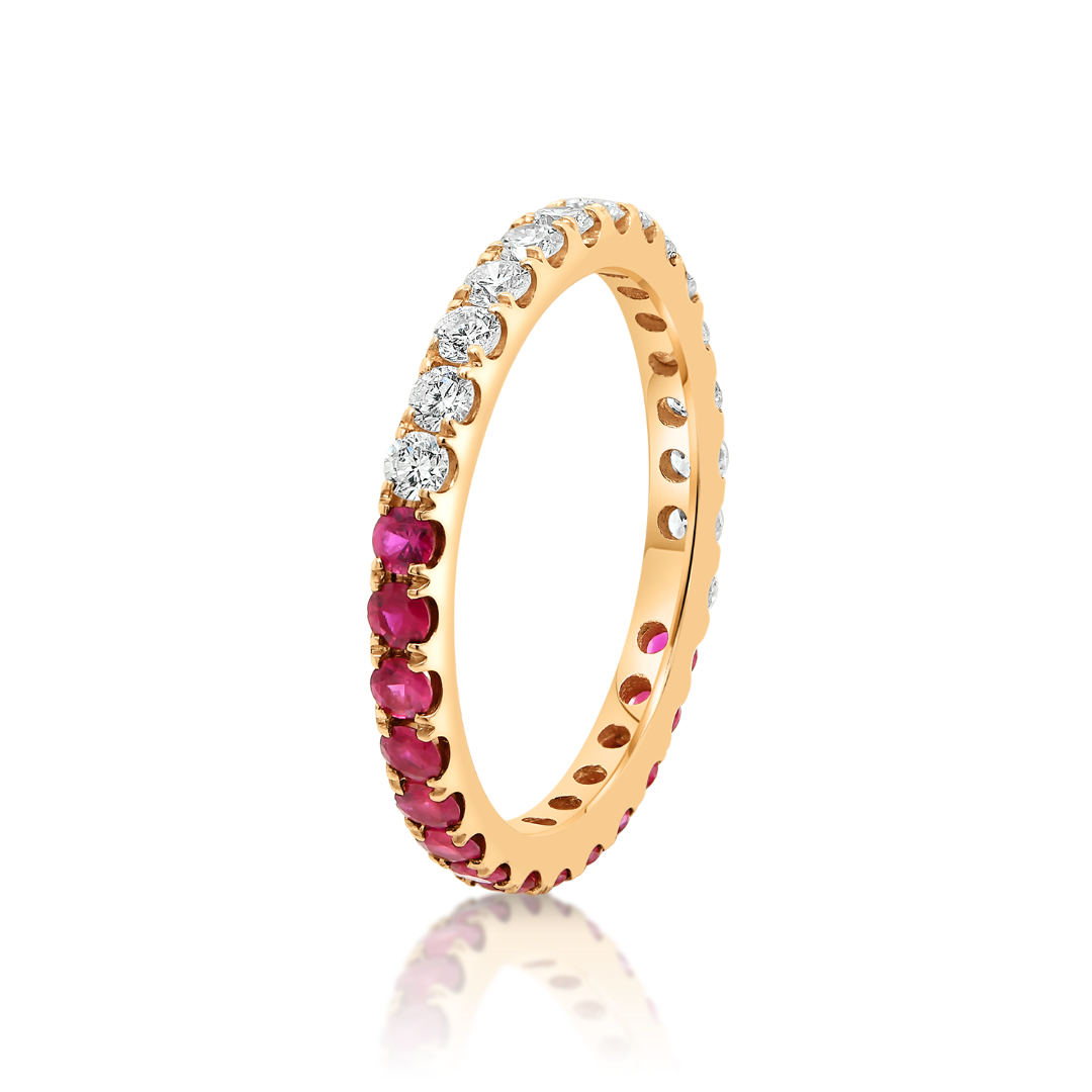 Inel din aur roz de 18K, încrustat cu 14 Rubine de 0.42ct și 15 Diamante Brilliant cut de 0.46ct.