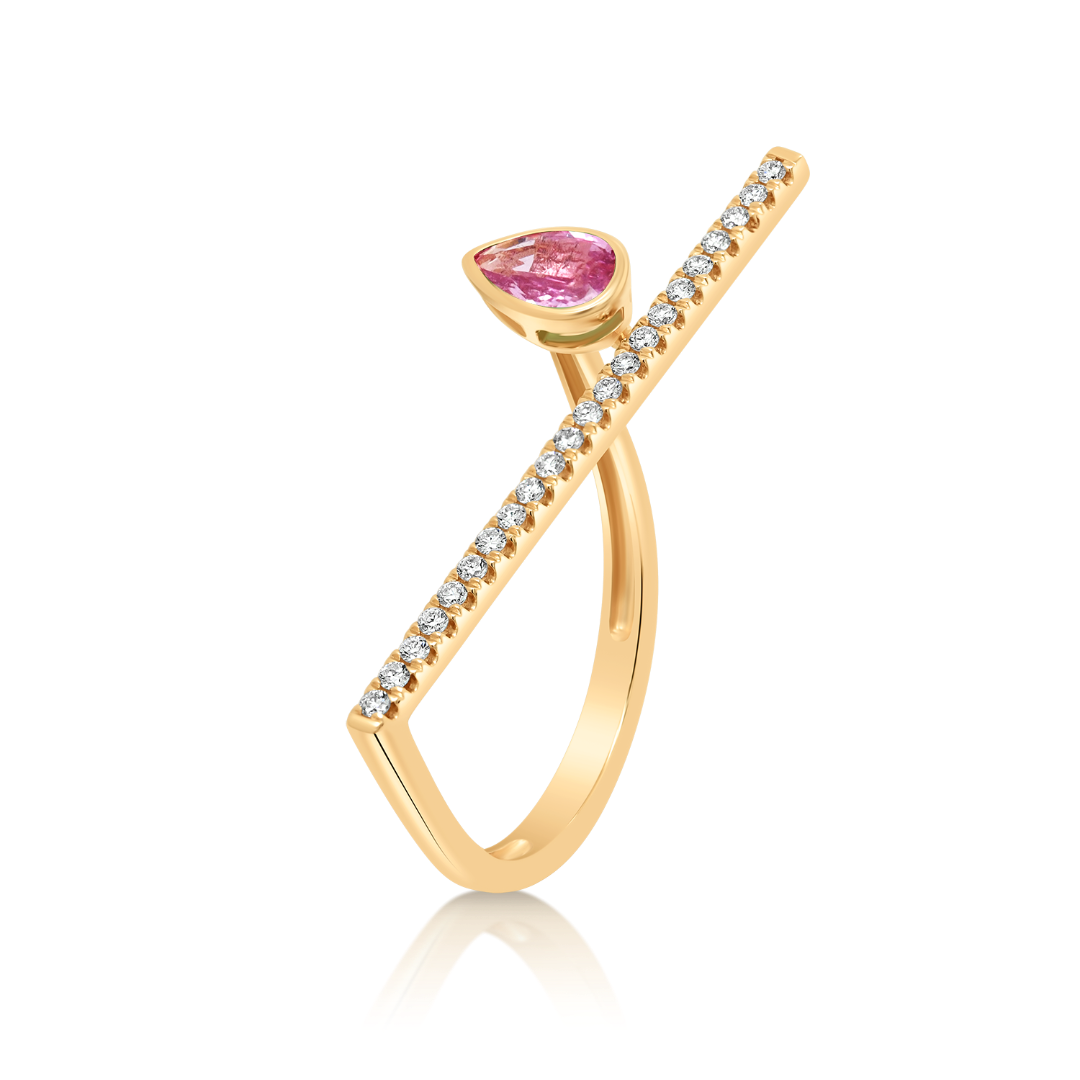 Inel din aur roz de 18K cu un Safir Fancy și 22 de Diamante Brilliant cut.