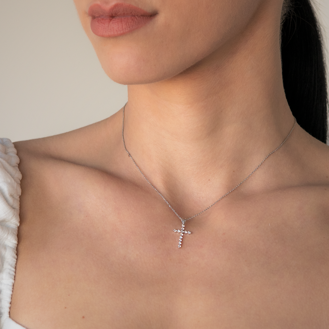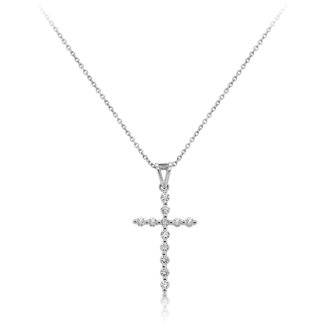 Pandantiv cruce din aur alb de 18K, încrustat cu 12 Diamante Round Brilliant.