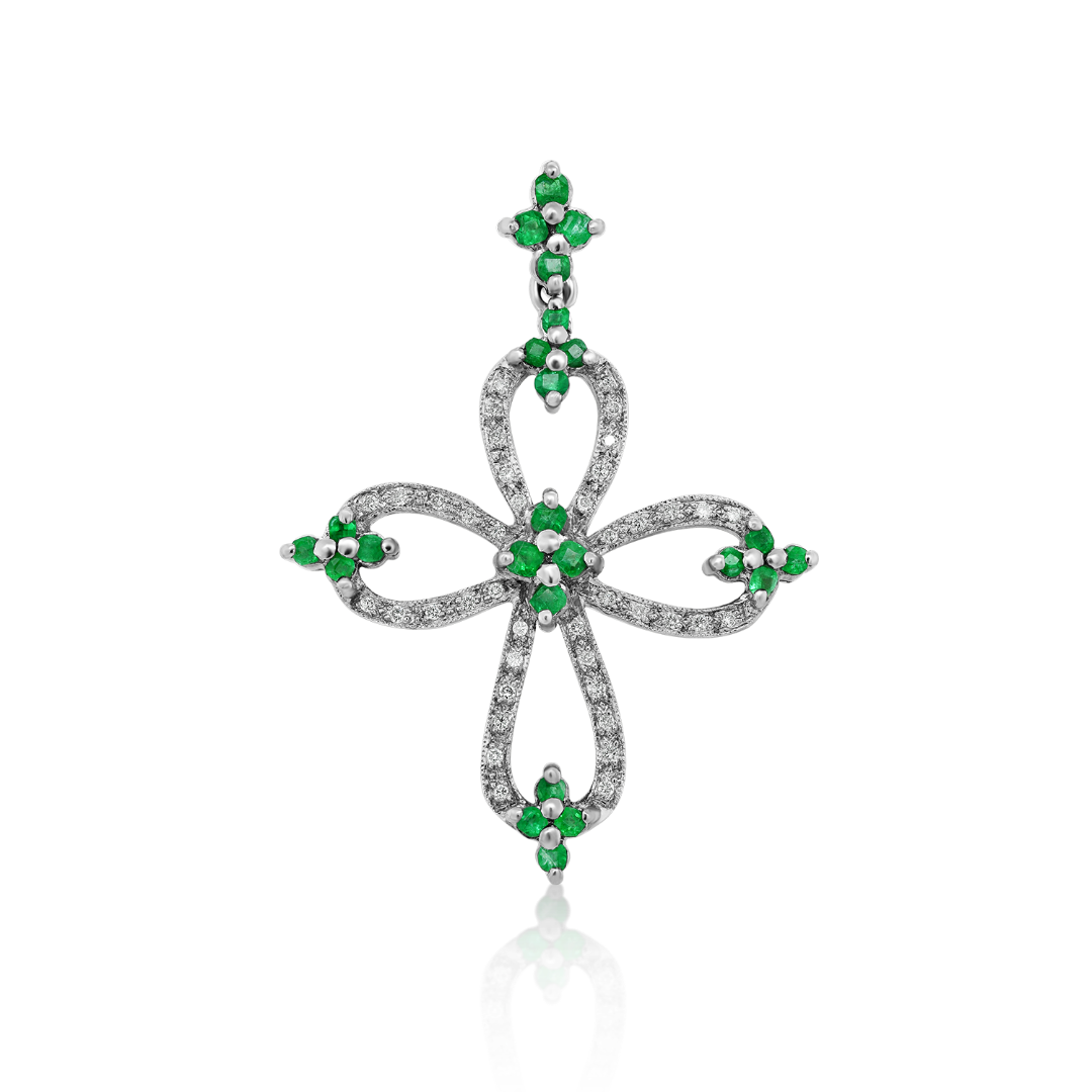 Pandantiv din aur alb de 18K, încrustat cu Diamante de 0.20ct și Smaralde.