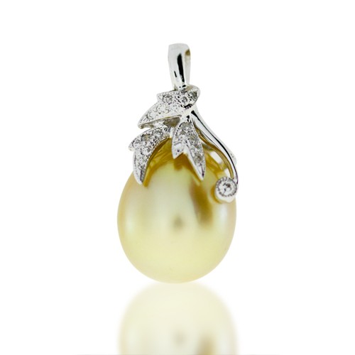 Pandantiv din aur alb cu Perlă și Diamante naturale.