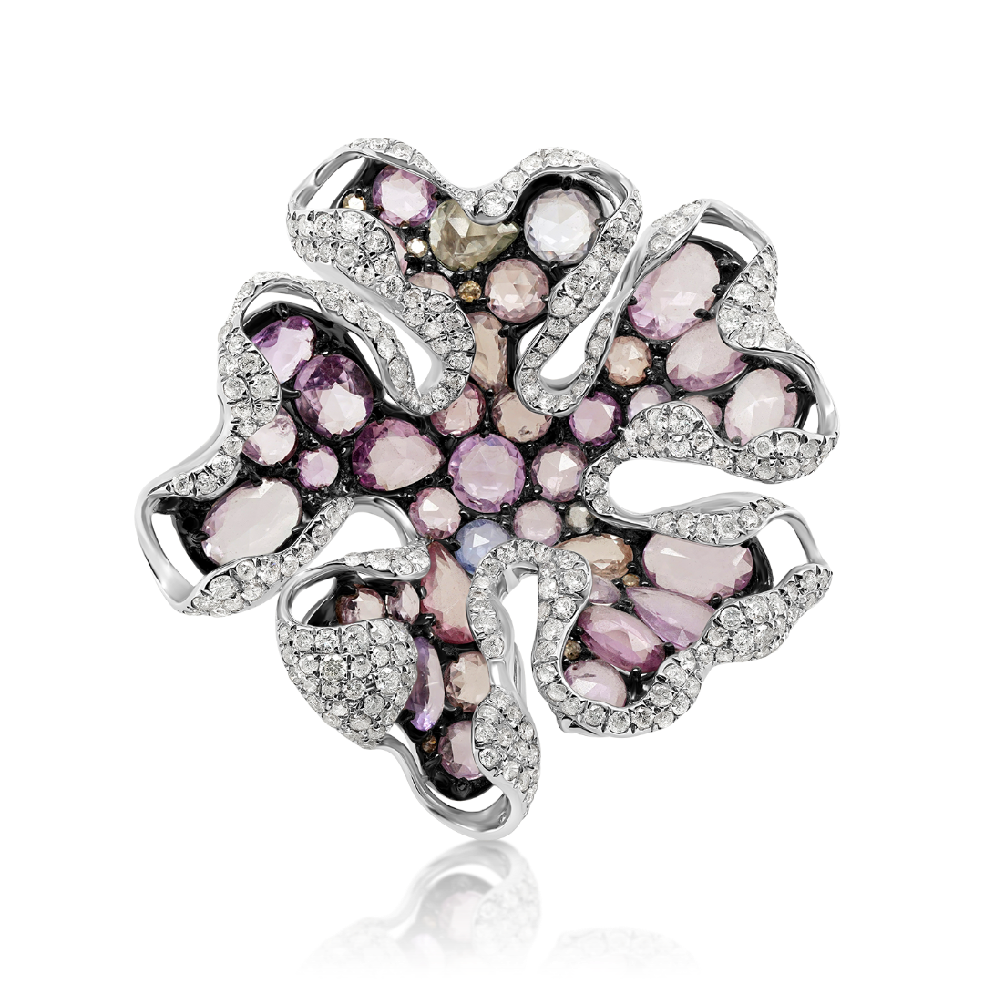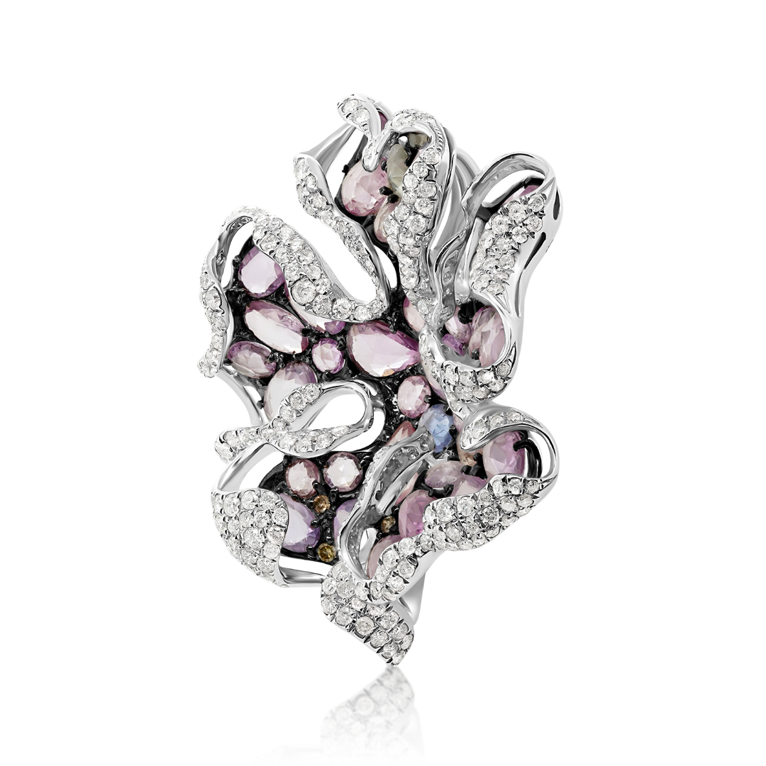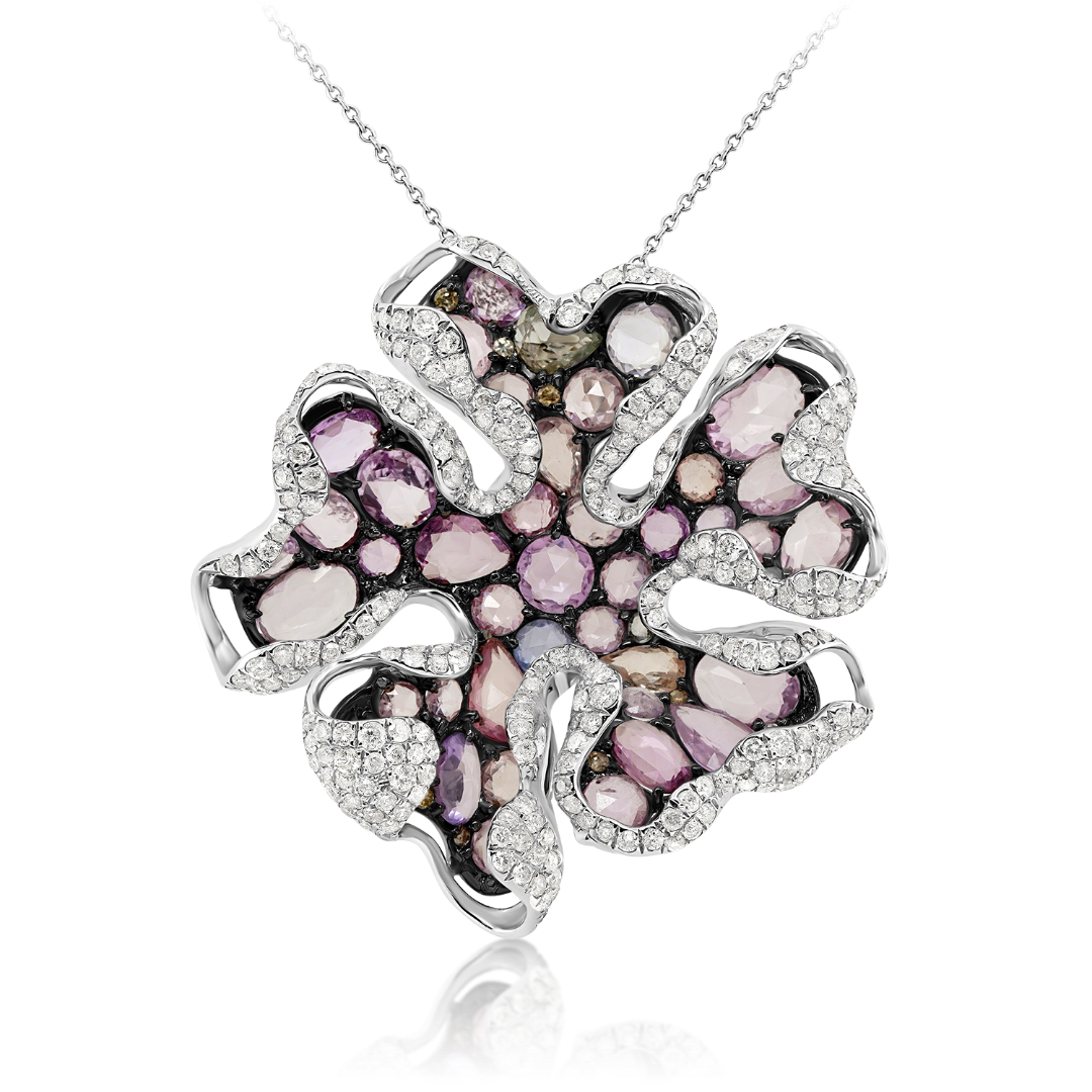 Pandantiv din aur alb de 18K cu Amestiste și Diamante naturale.