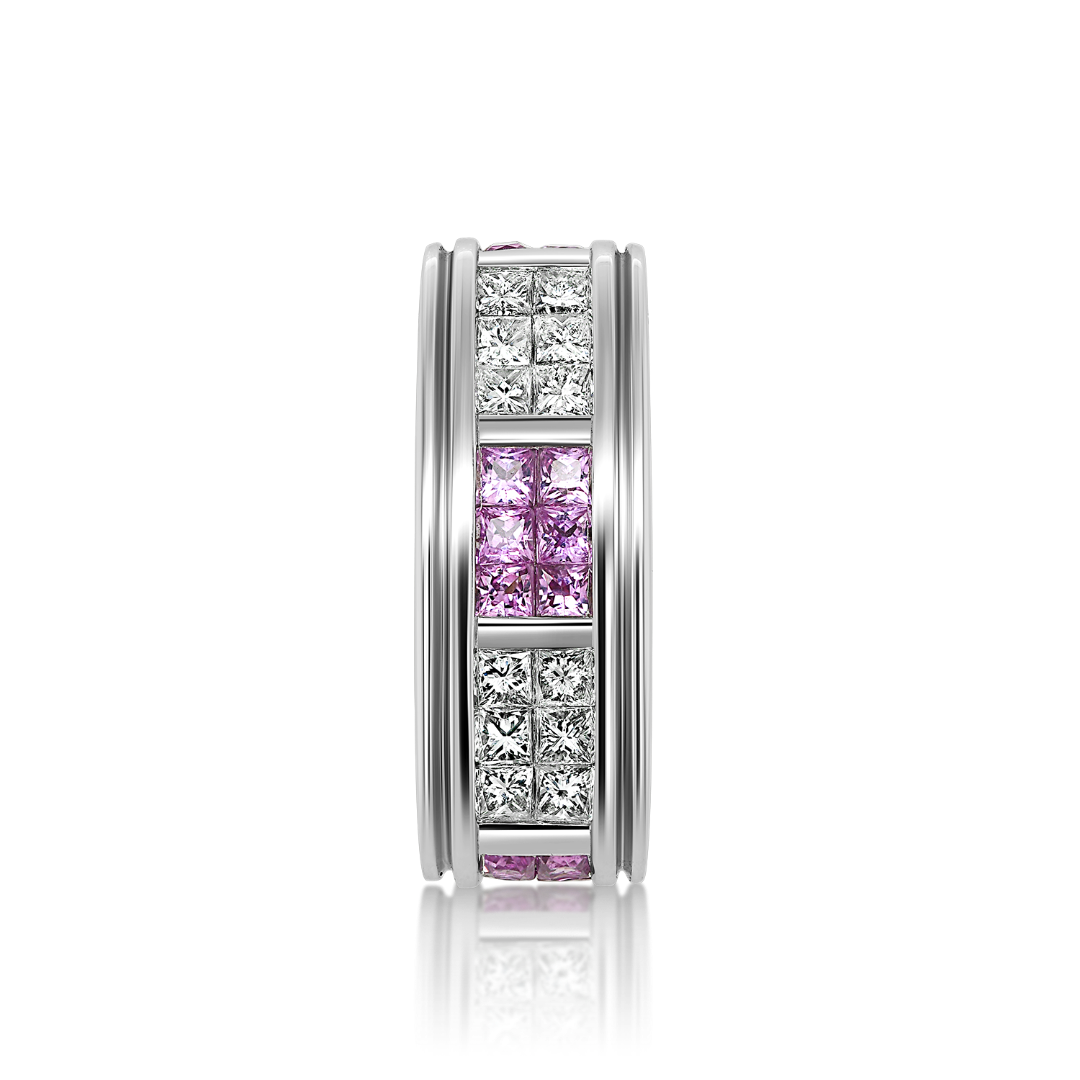 Pandantiv din aur alb de 18K încrustat cu Ametiste și Diamante naturale de 0.34ct.