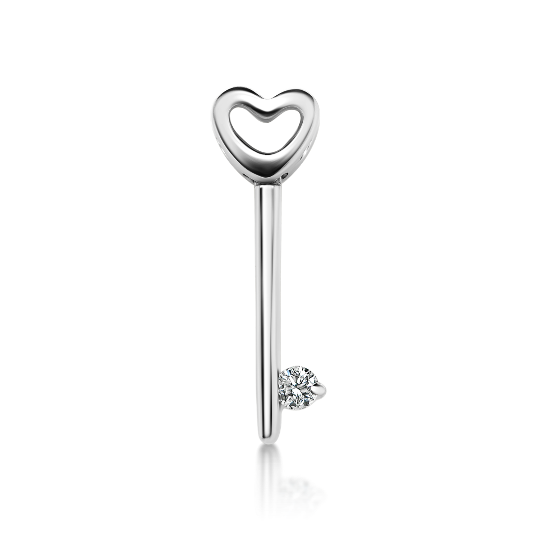 Pandantiv cheie din aur alb de 18K, cu un Diamant Round Brilliant de 0.03ct.