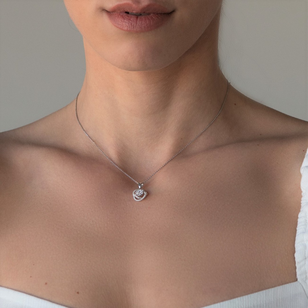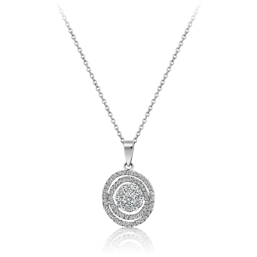 Pandantiv din aur alb de 18K încrustat cu Diamante naturale Round Brilliant naturale.
