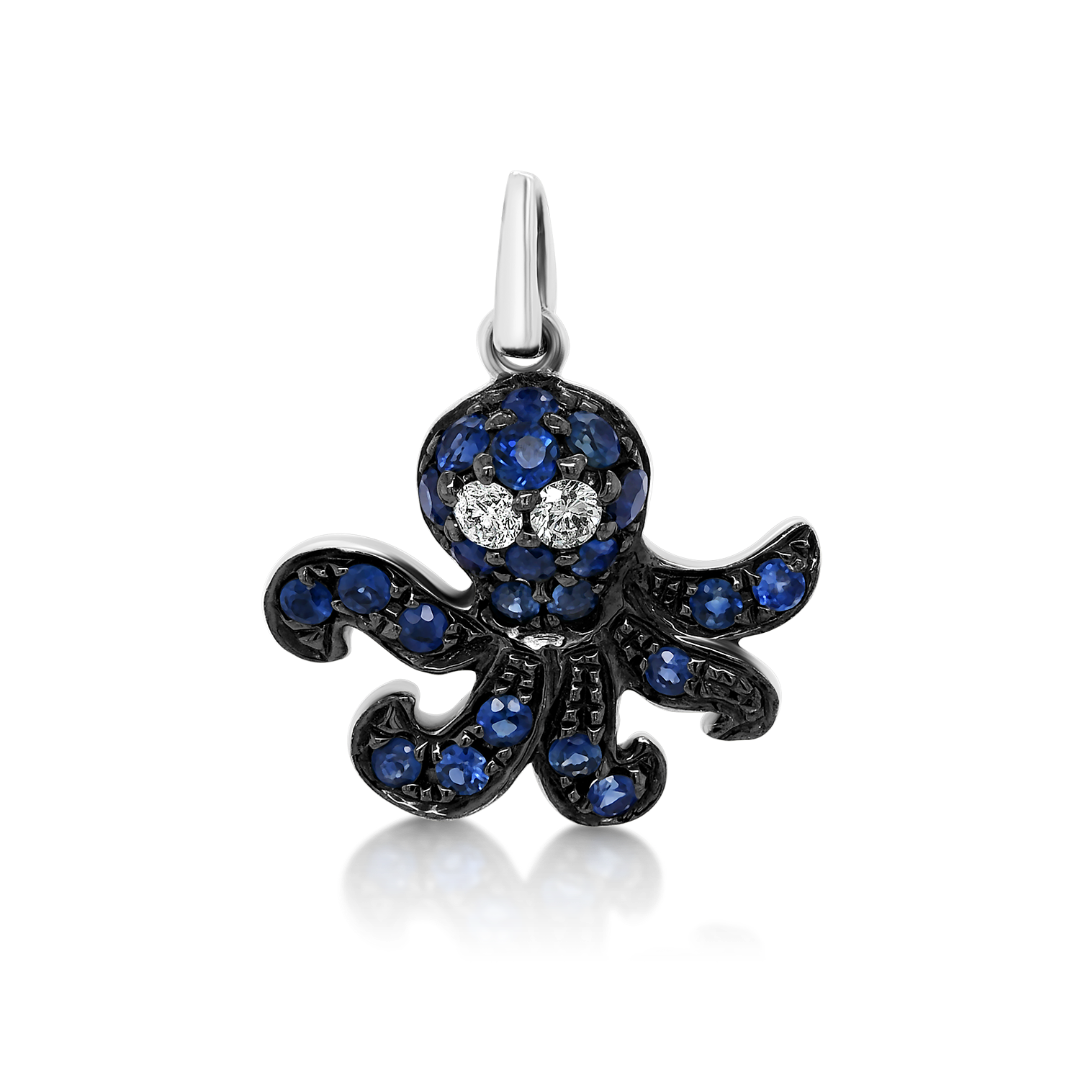 Pandantiv din aur alb de 18K încrustat cu Diamante 0.04ct. și Safire de 0.26ct.
