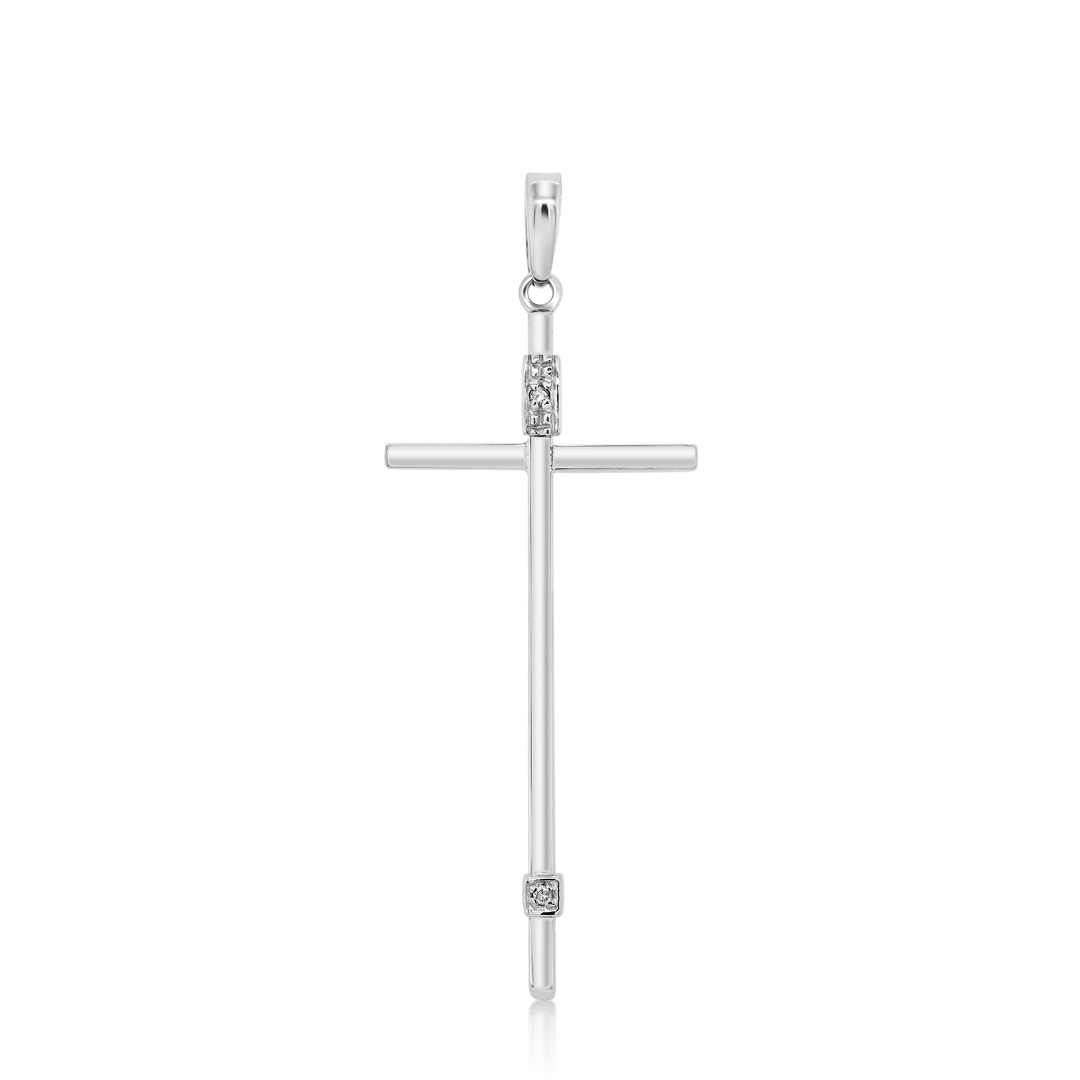 Pandantiv din aur alb de 18K, cu element tip cruce încrustat cu Diamante 0.02ct.