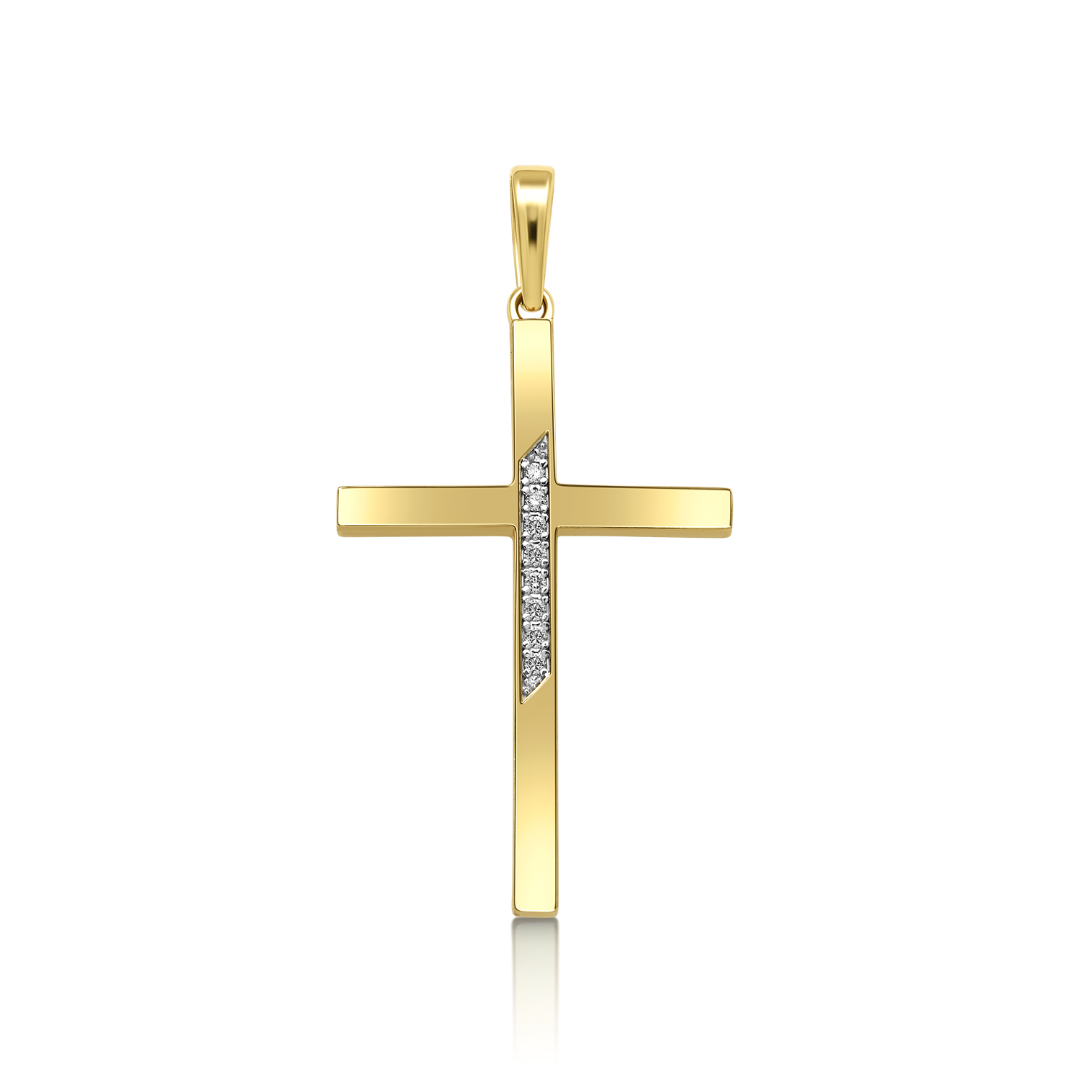 Pandantiv cruce din aur galben de 14K cu Diamante naturale.