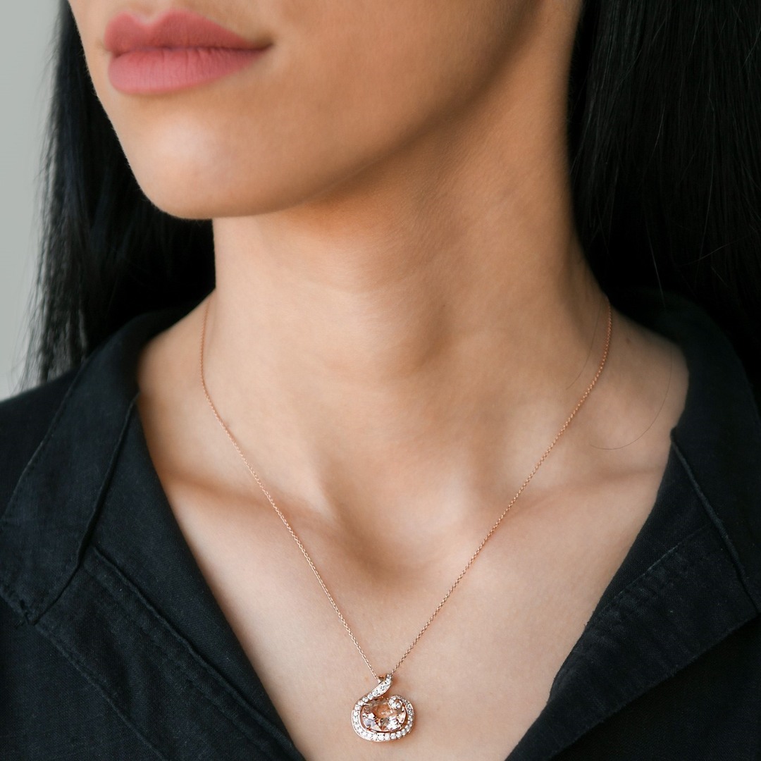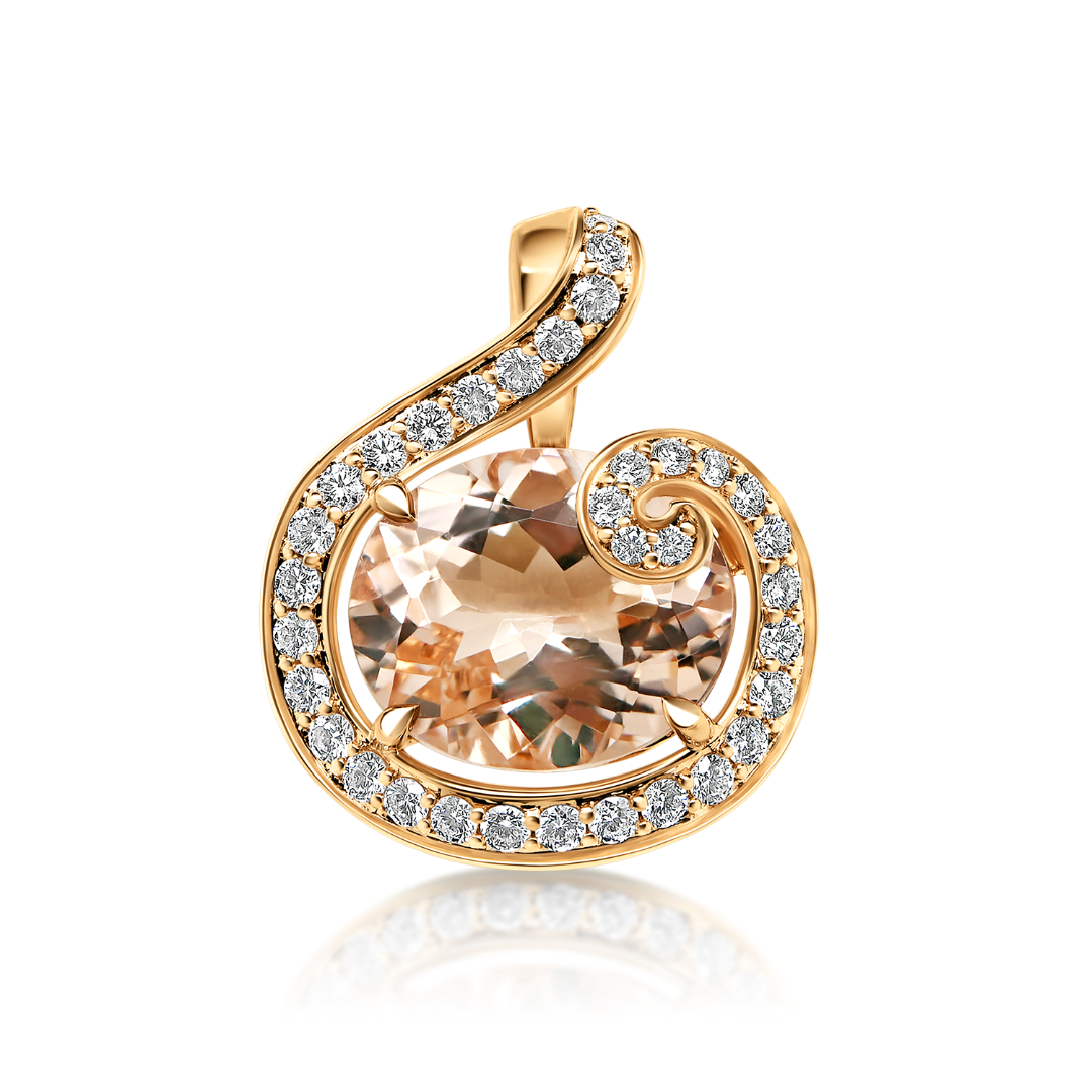 Pandantiv din aur roz de 18K, încrustat cu 34 de Diamante cu o greutate de 0.48ct. și o piatră Morganit de 4.01ct.