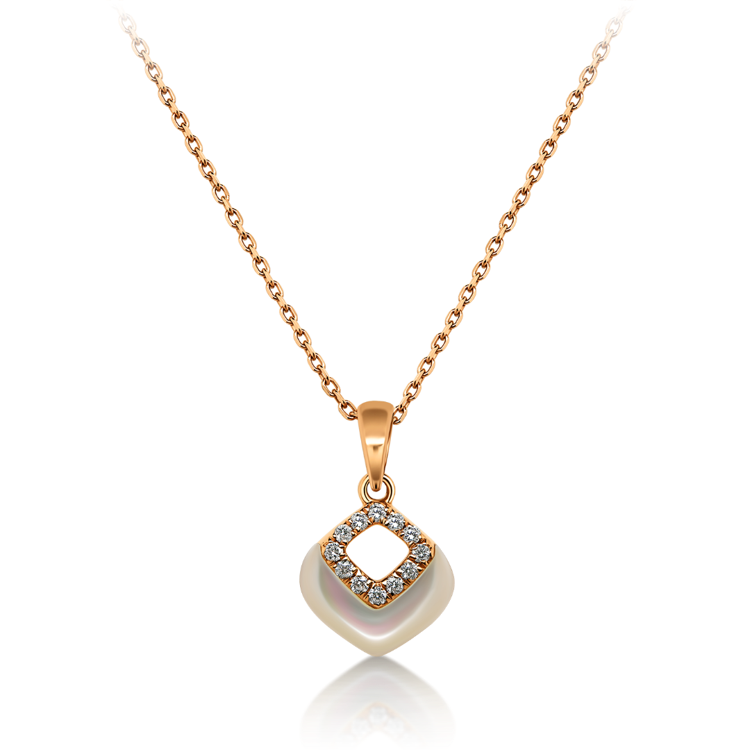 Pandantiv din aur roz de 18K, încrustat cu 12 Diamante Round Brilliant naturale și Sidef.
