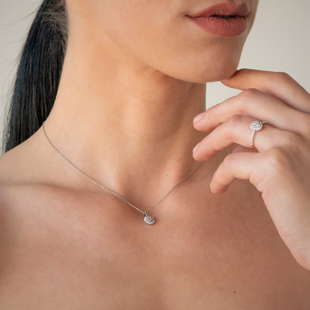 Pandantiv din aur alb de 18K cu 19 Diamante Round Brilliant naturale de 0.420ct.