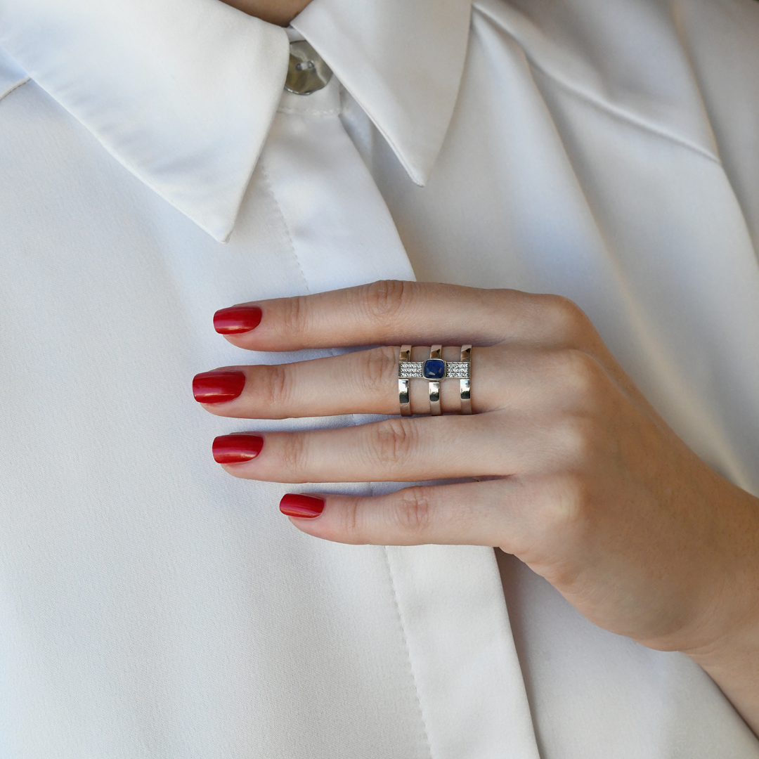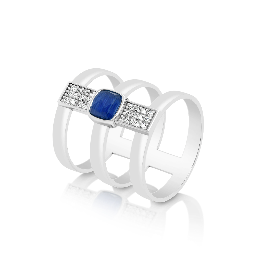 Inel din aur alb de 14K cu pietre Cubic Zirconia.