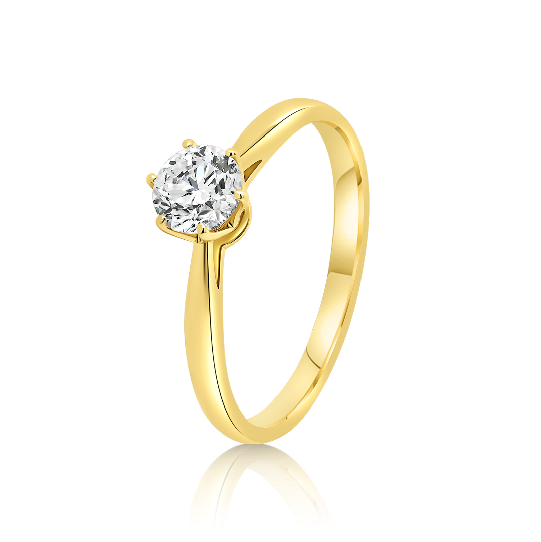 Inel de logodnă din aur galben de 18K cu un Diamant natural certificat la Institutul Gemologic GIA cu numărul 1518125649.