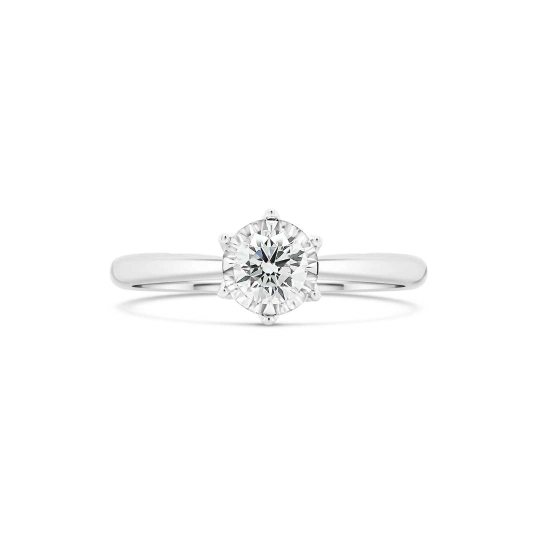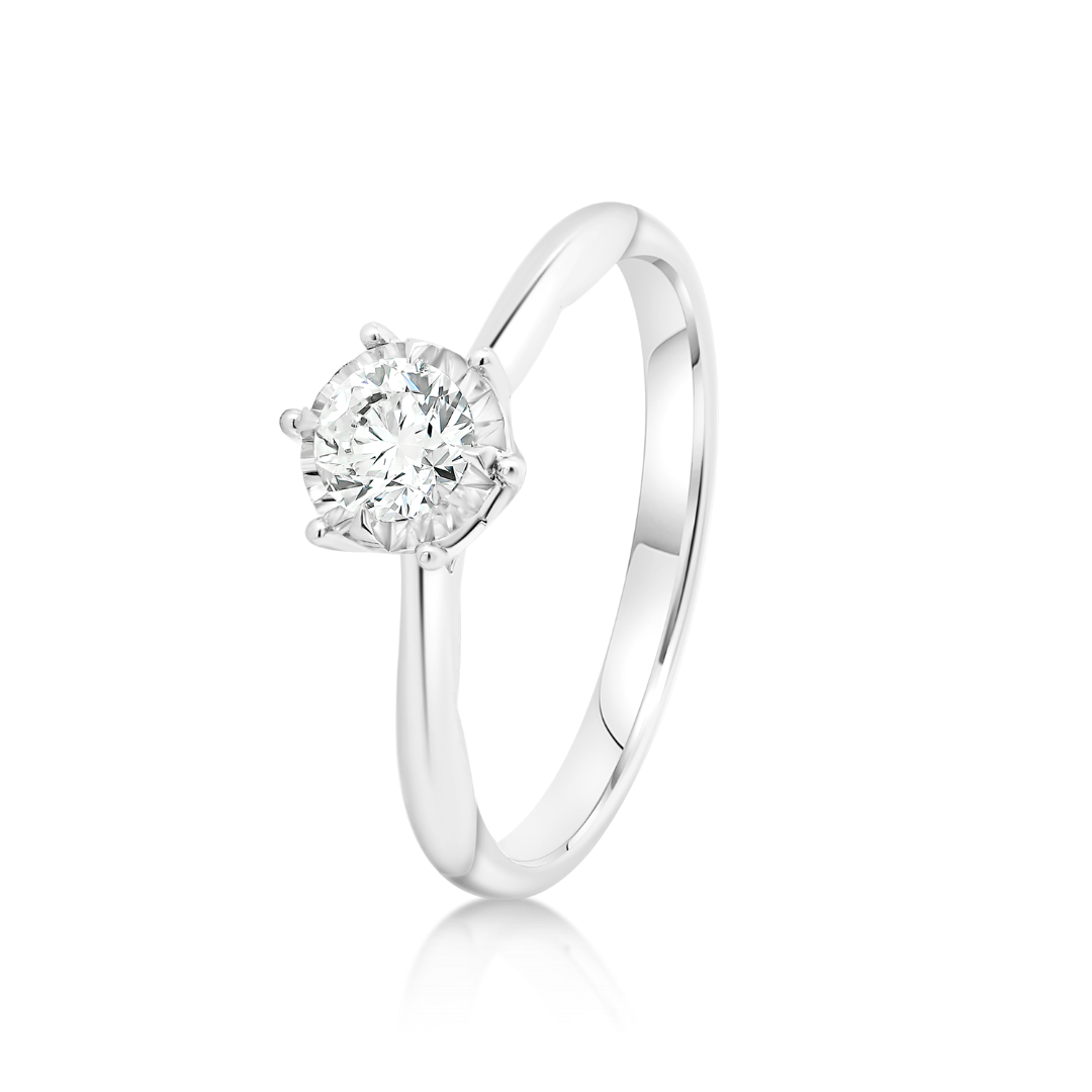 Inel de logodnă din aur alb de 18K încrustat cu un Diamant Brilliant de 0.30ct certificat la prestigiosul Institut Gemologic GIA cu numărul 6422264869.