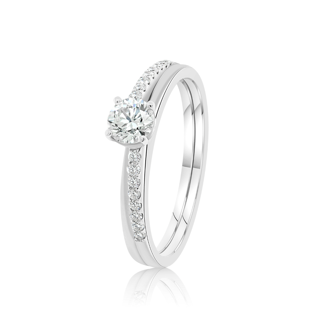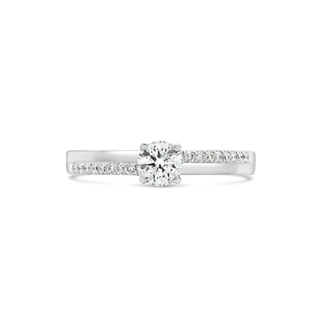 Inel de logodnă din aur alb de 18K, încrustat central cu un Diamant natural certificat GIA de 0.34ct și 24 de Diamante laterale de 0.16ct.