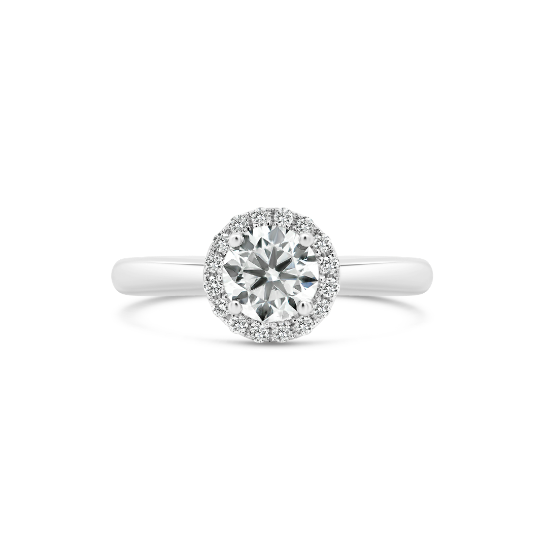 Inel de logodnă din aur alb de 18K, încrustat central cu un Diamant Brilliant de 0.70ct certificat la prestigiosul Institut Gemologic GIA cu numărul 6211909549 și lateral cu 16 Diamante de 0.105ct.