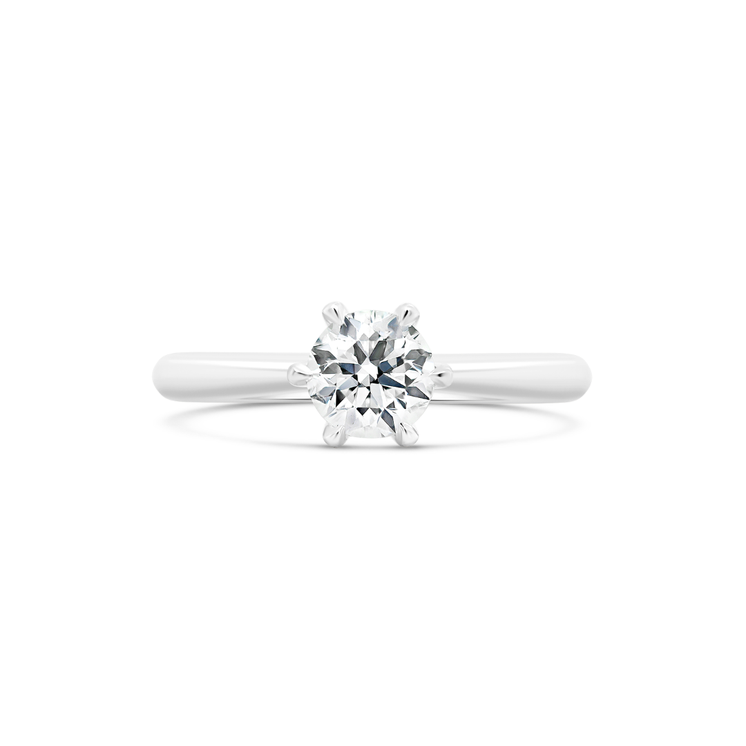 Inel de logodnă din aur alb de 18K încrustat cu un Diamant Brilliant de 0.50ct certificat la prestigiosul Institut Gemologic GIA cu numărul 6442406419.