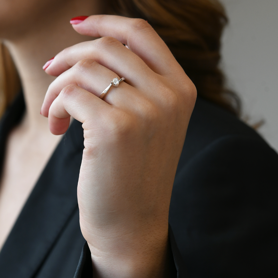 Inel de logodnă din aur alb de 18K cu Diamante naturale brilliant cut.