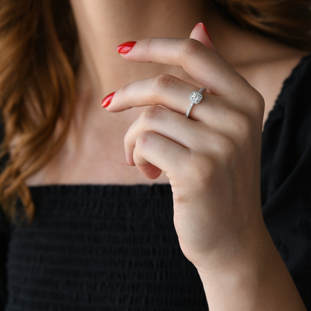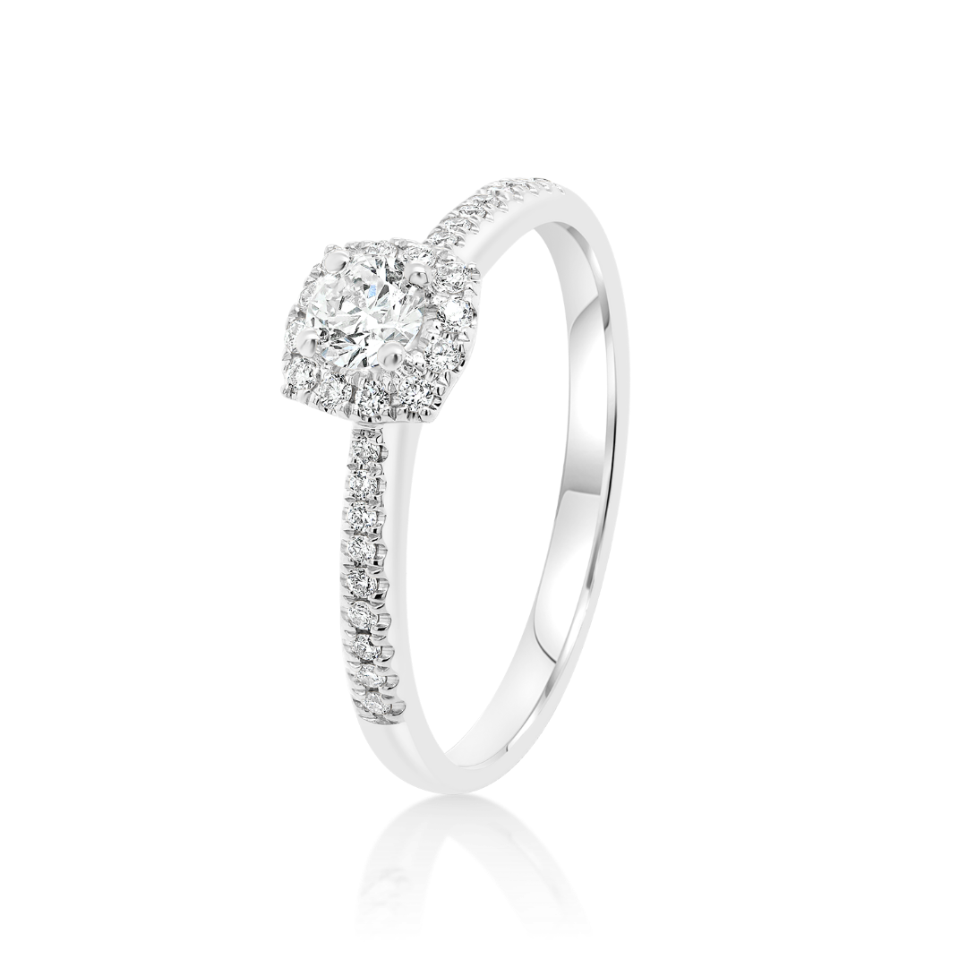 Inel de logodnă din aur alb de 18K cu Diamante naturale Round Brilliant.