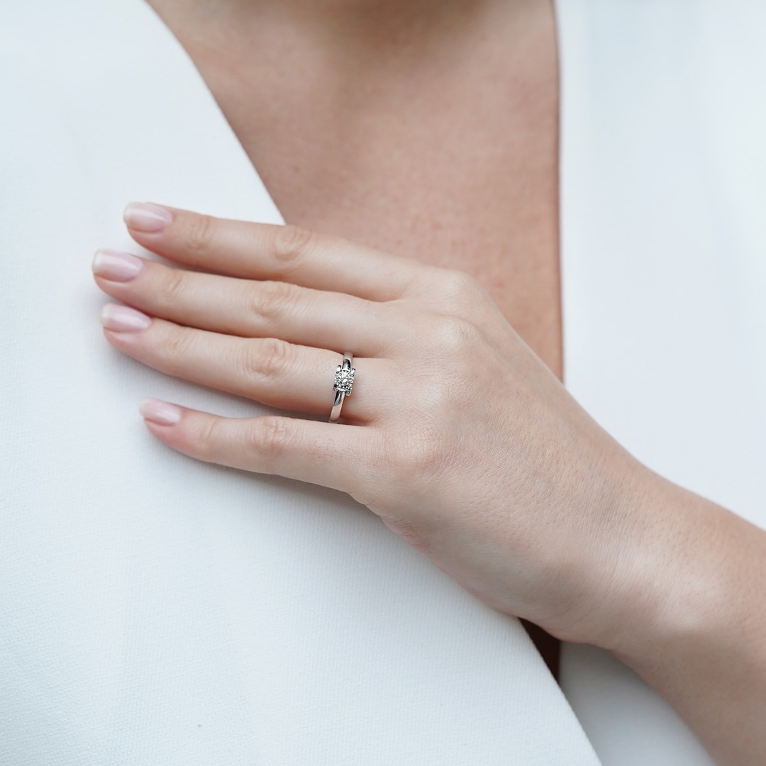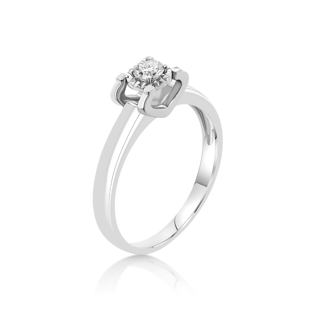 Inel de logodnă din aur alb de 18K cu un Diamant natural round brilliant de 0.15ct.