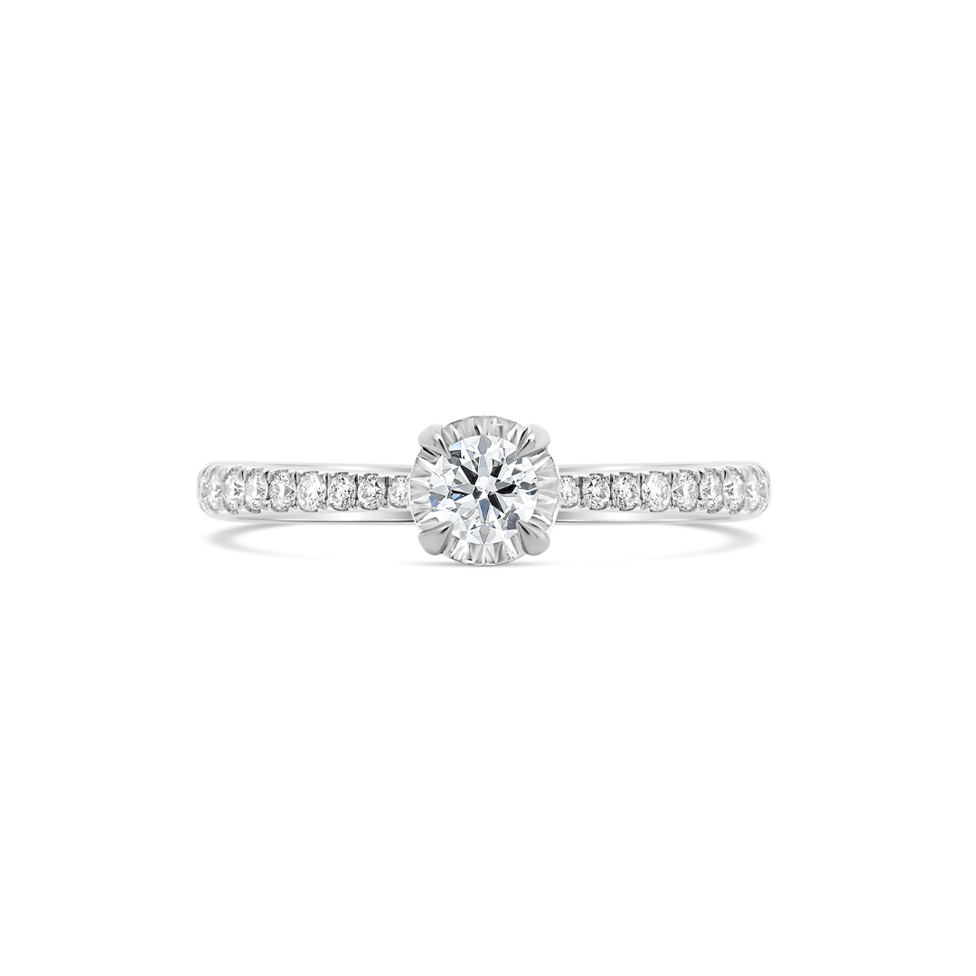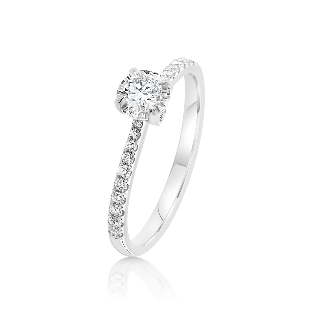 Inel de logodnă din aur alb de 18K cu 23 de Diamante naturale Round Brilliant.