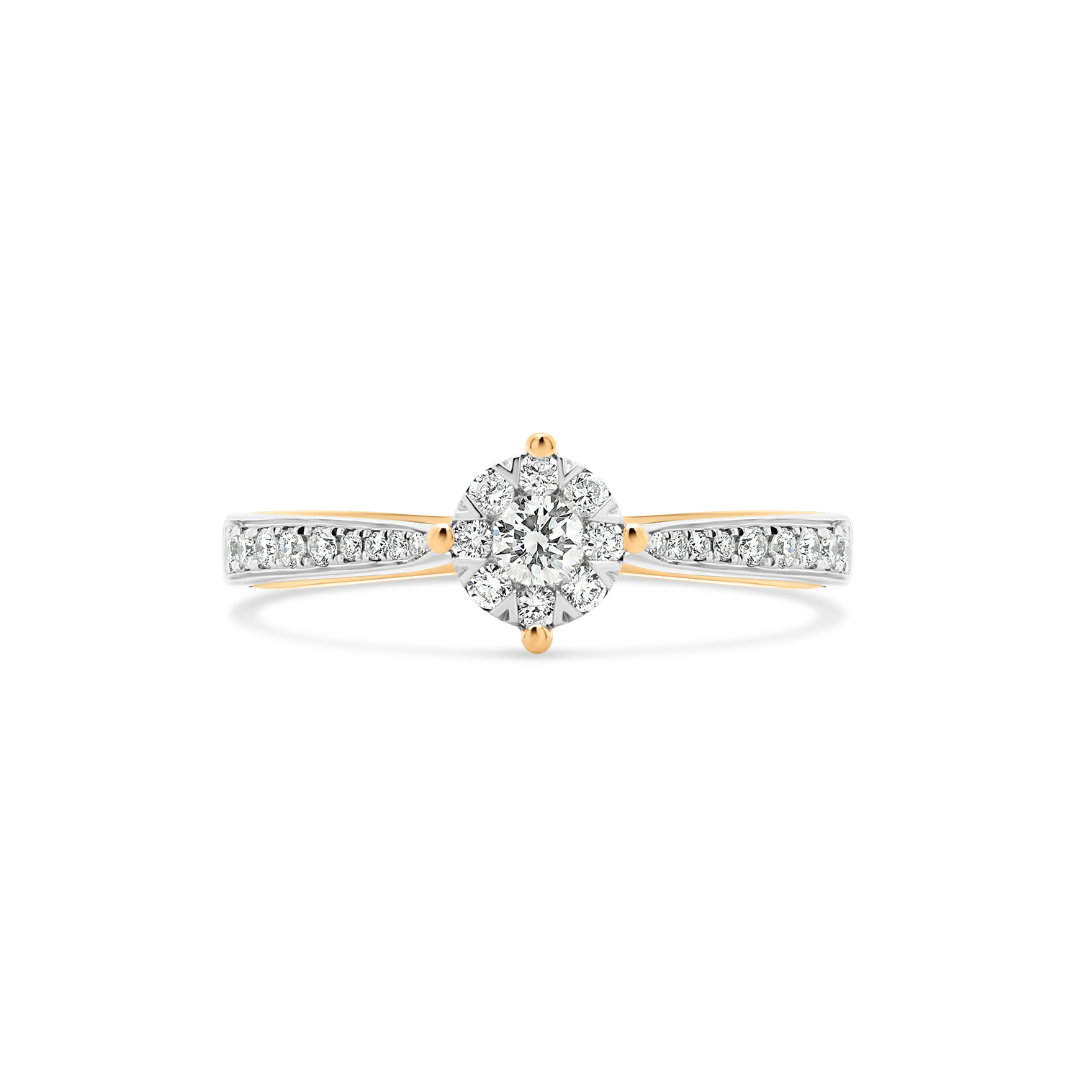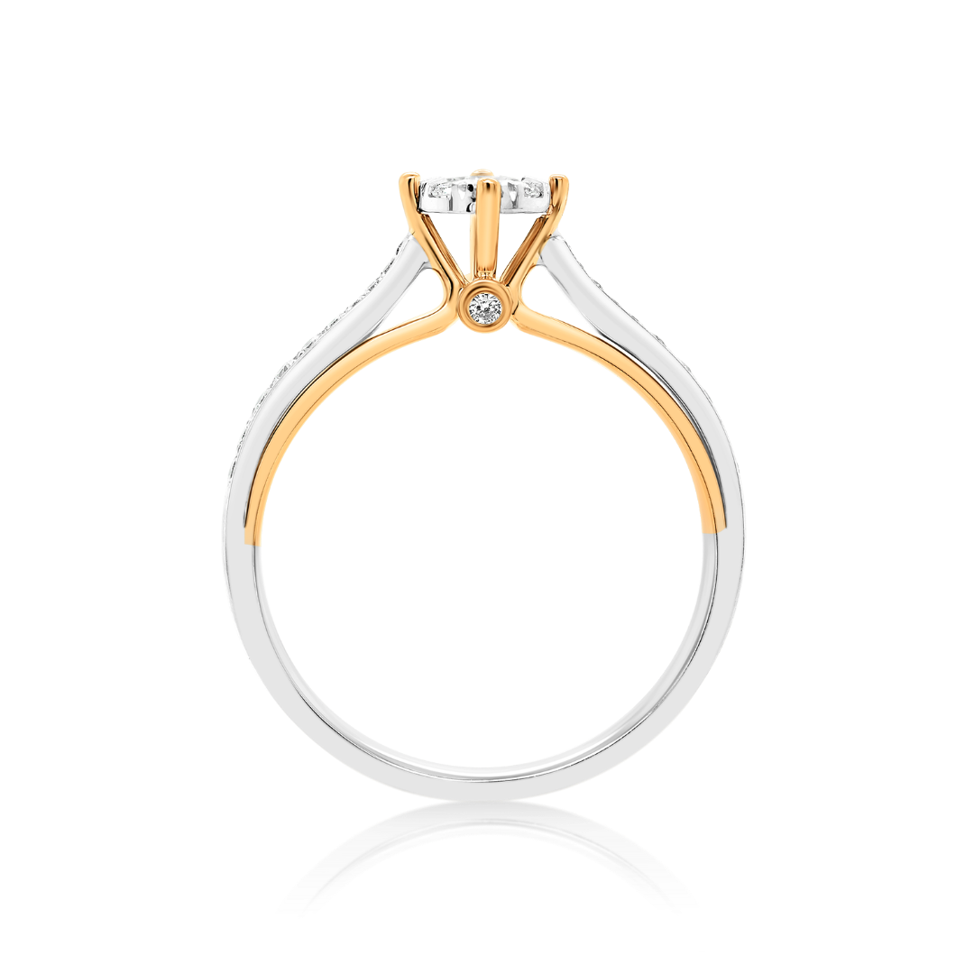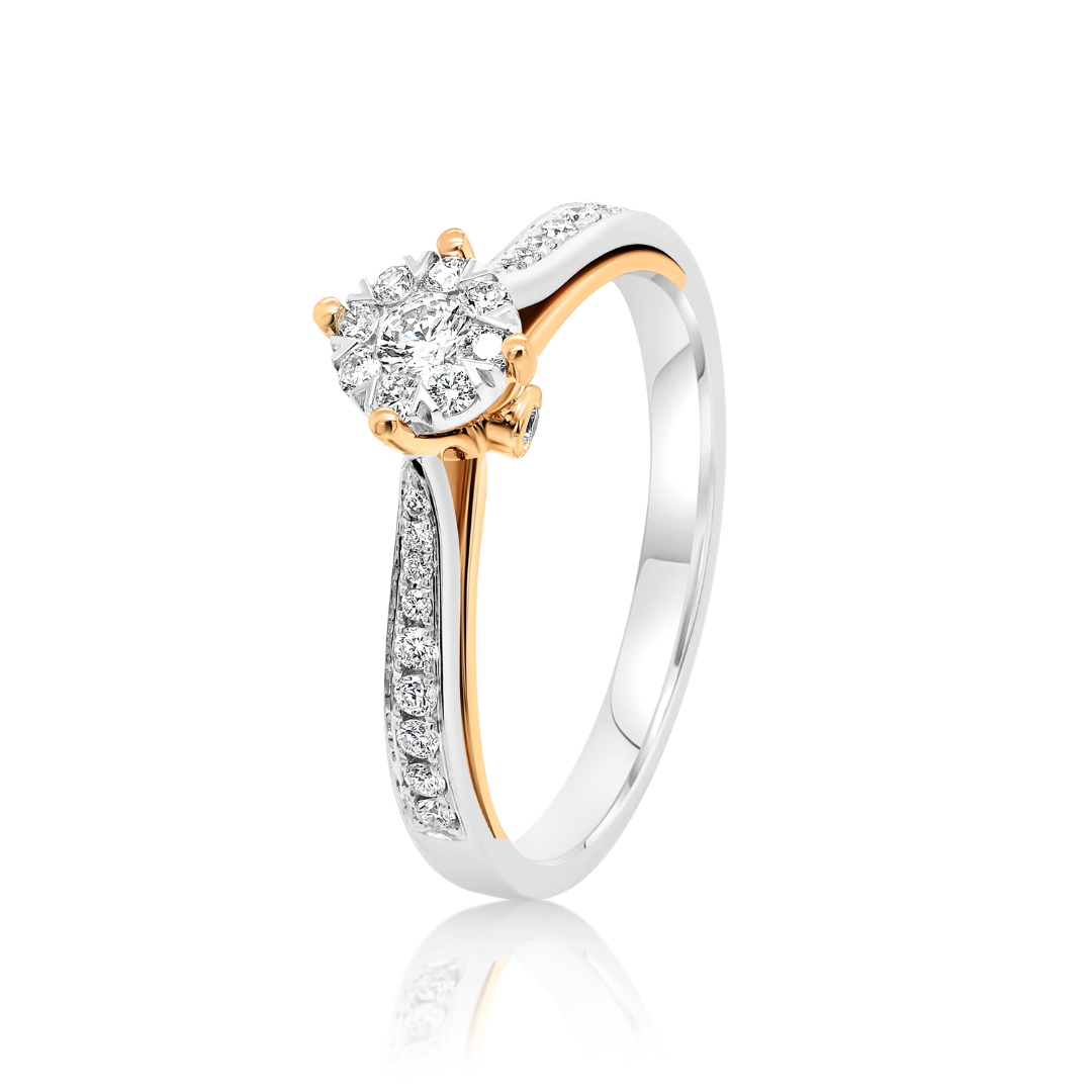 Inel de logodnă din aur alb de 18K, încrustat cu 29 de Diamante naturale Round Brilliant și element din aur roz.