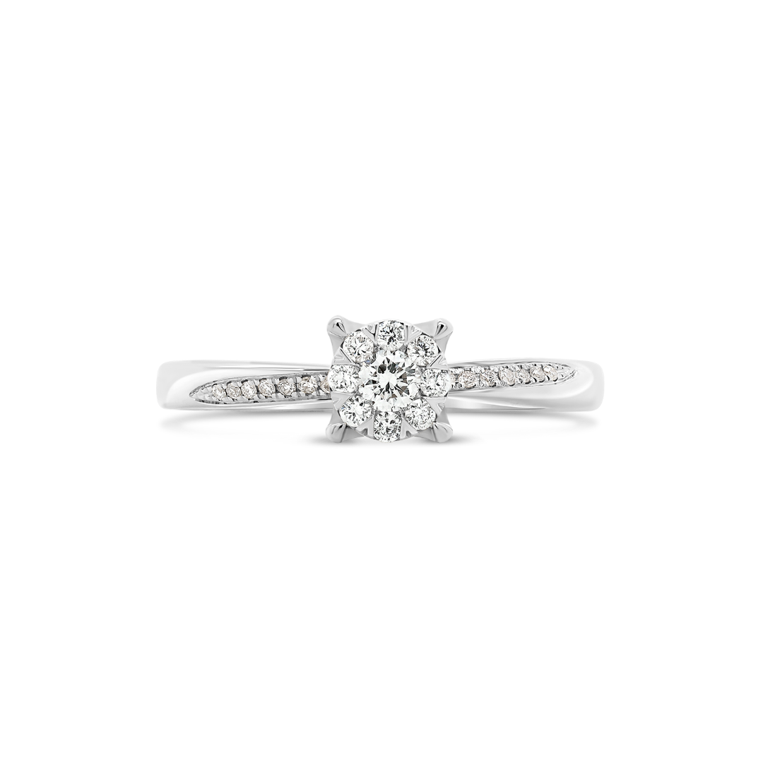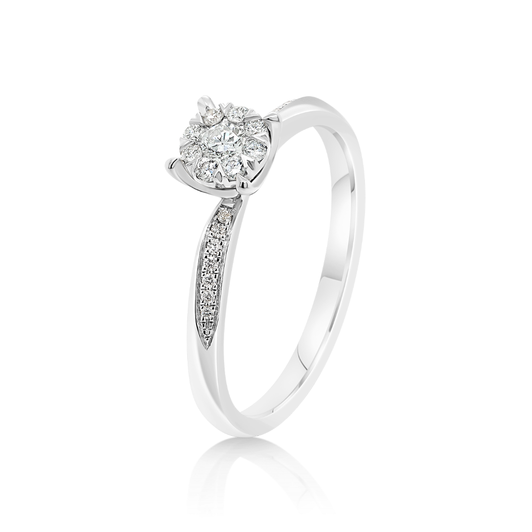 Inel de logodnă din aur alb de 18K cu 23 de Diamante naturale Round Brilliant.