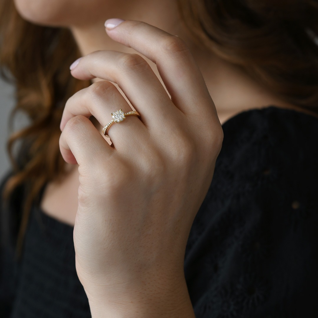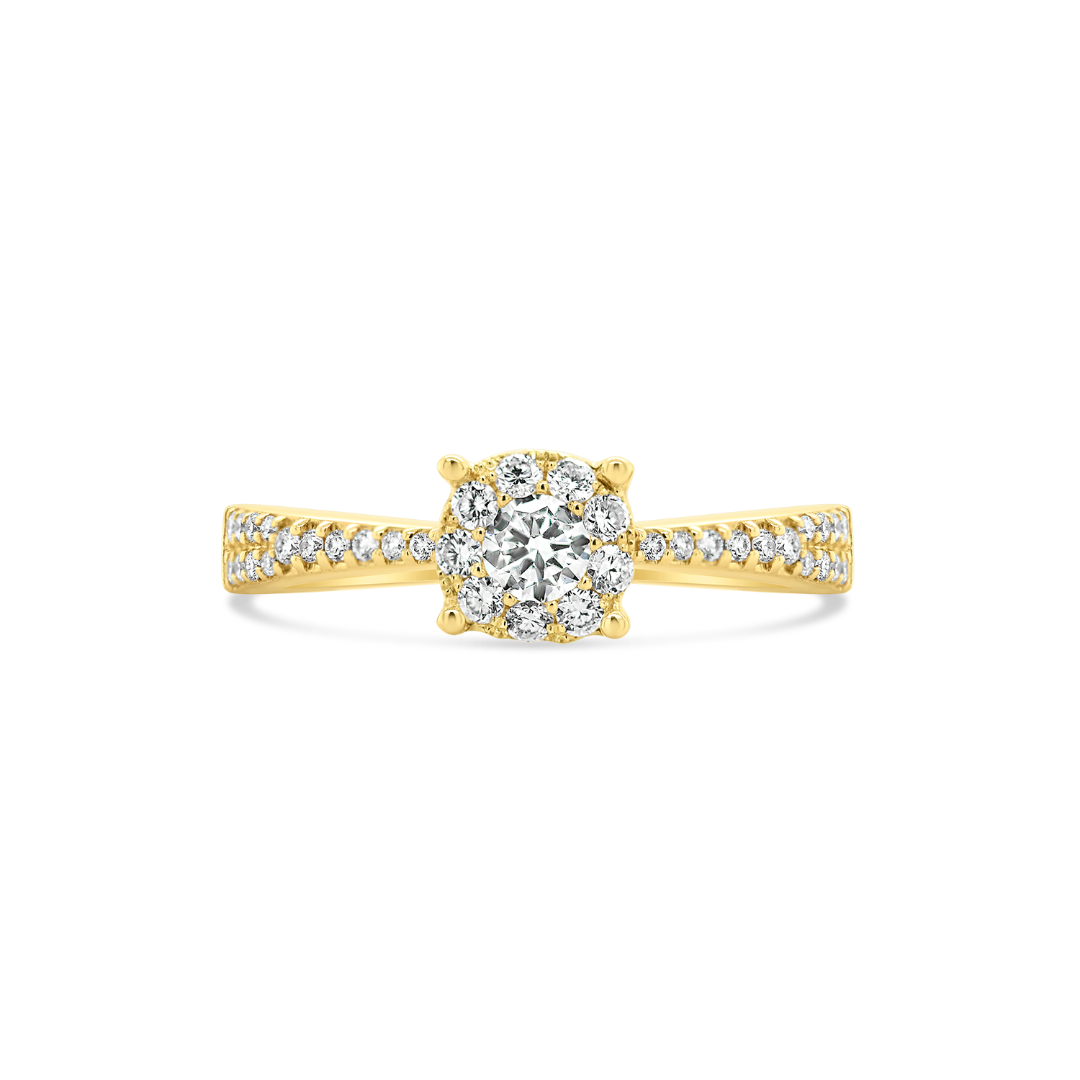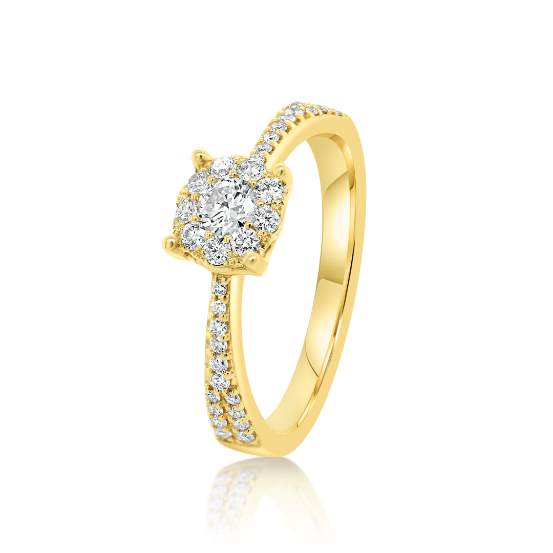 Inel de logodnă din aur galben de 18K cu Diamante naturale Round Brilliant.
