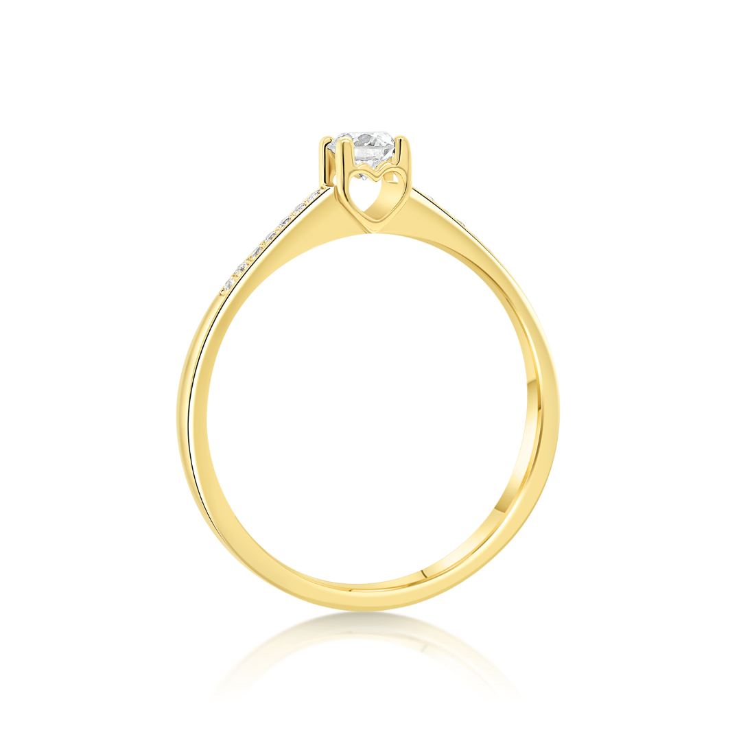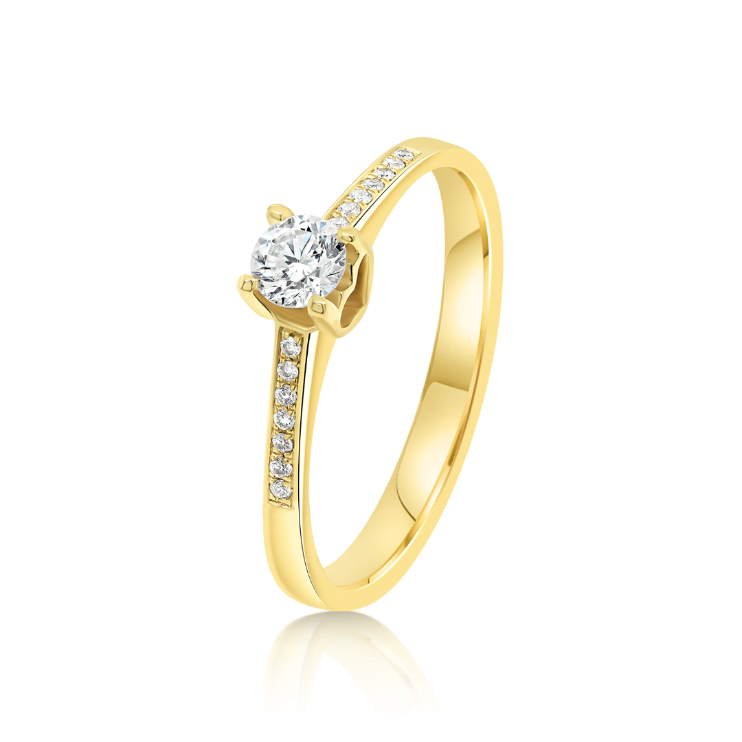 Inel de logodnă din aur galben de 18K încrustat cu Diamante naturale Round Brilliant.