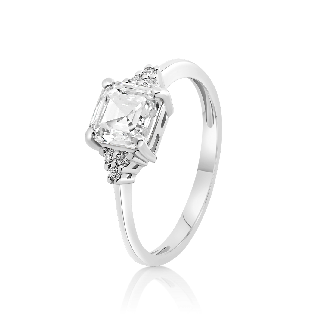 Inel de logodnă din aur alb de 14K cu Diamante create în laborator.