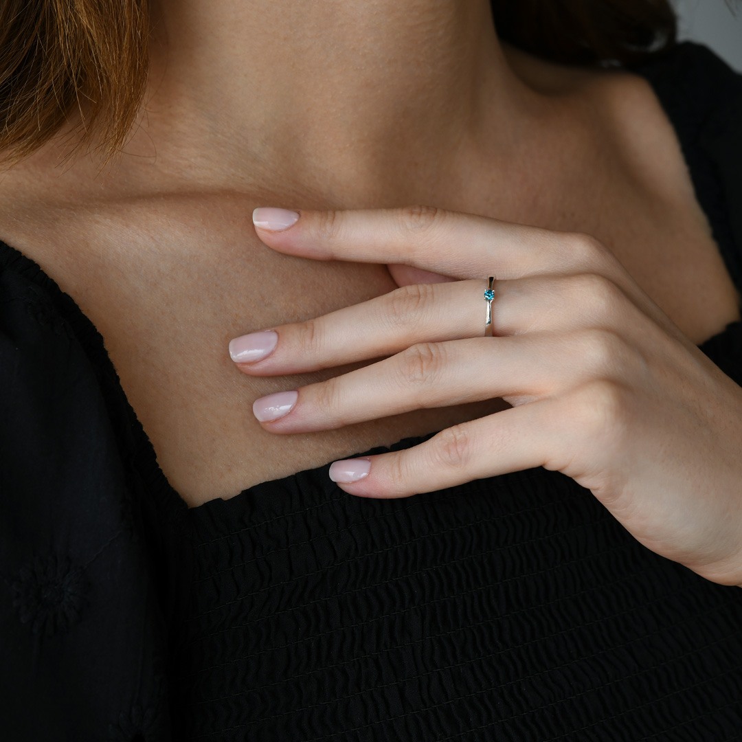 Inel din aur alb de 18K cu un Diamant albastru natural.