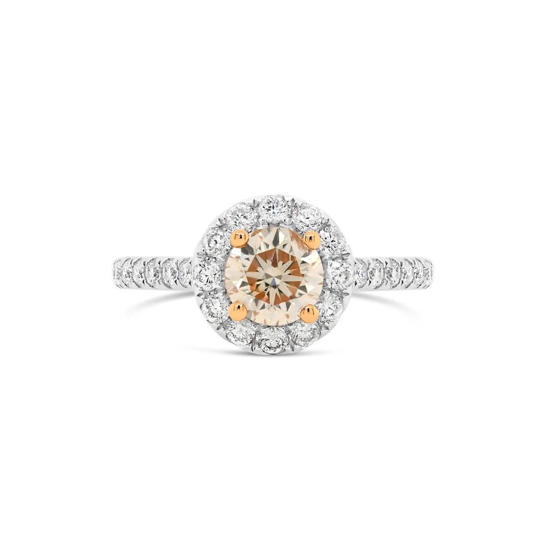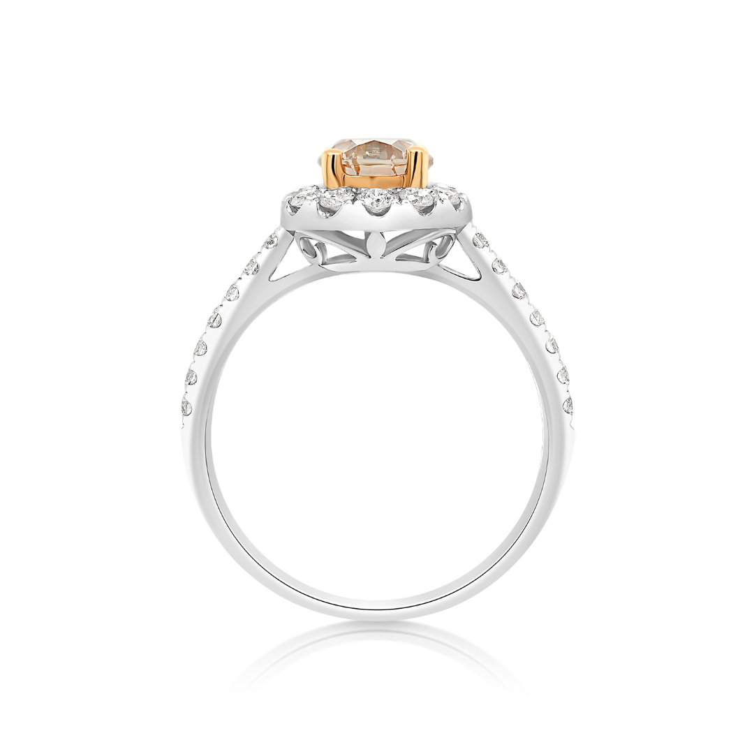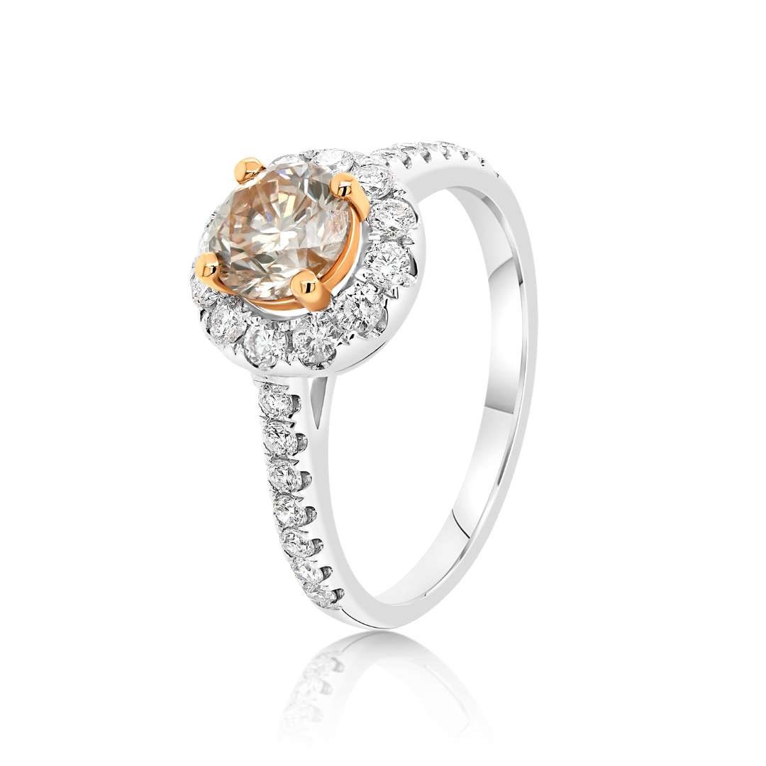 Inel din aur alb de 18K, cu un Diamant Fancy de 0.73ct și 26 de Diamante naturale, incolore, de 0.41ct.