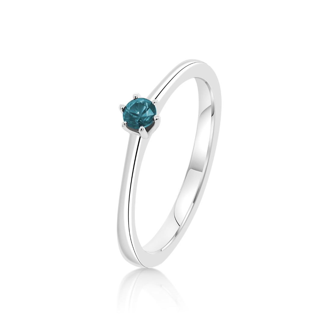 Inel de logodnă din aur alb de 18K cu un Diamant albastru de 0.083ct.