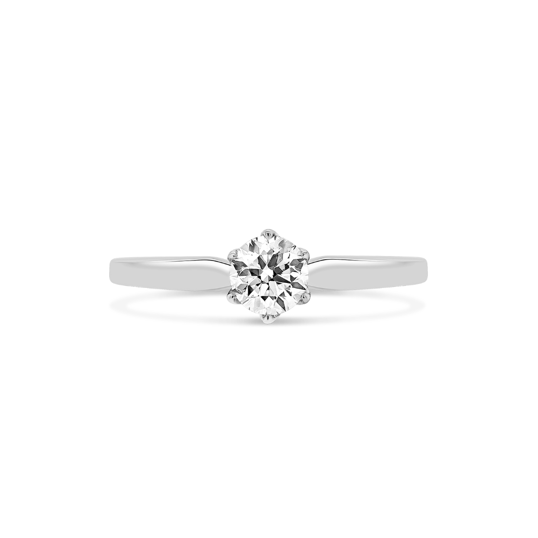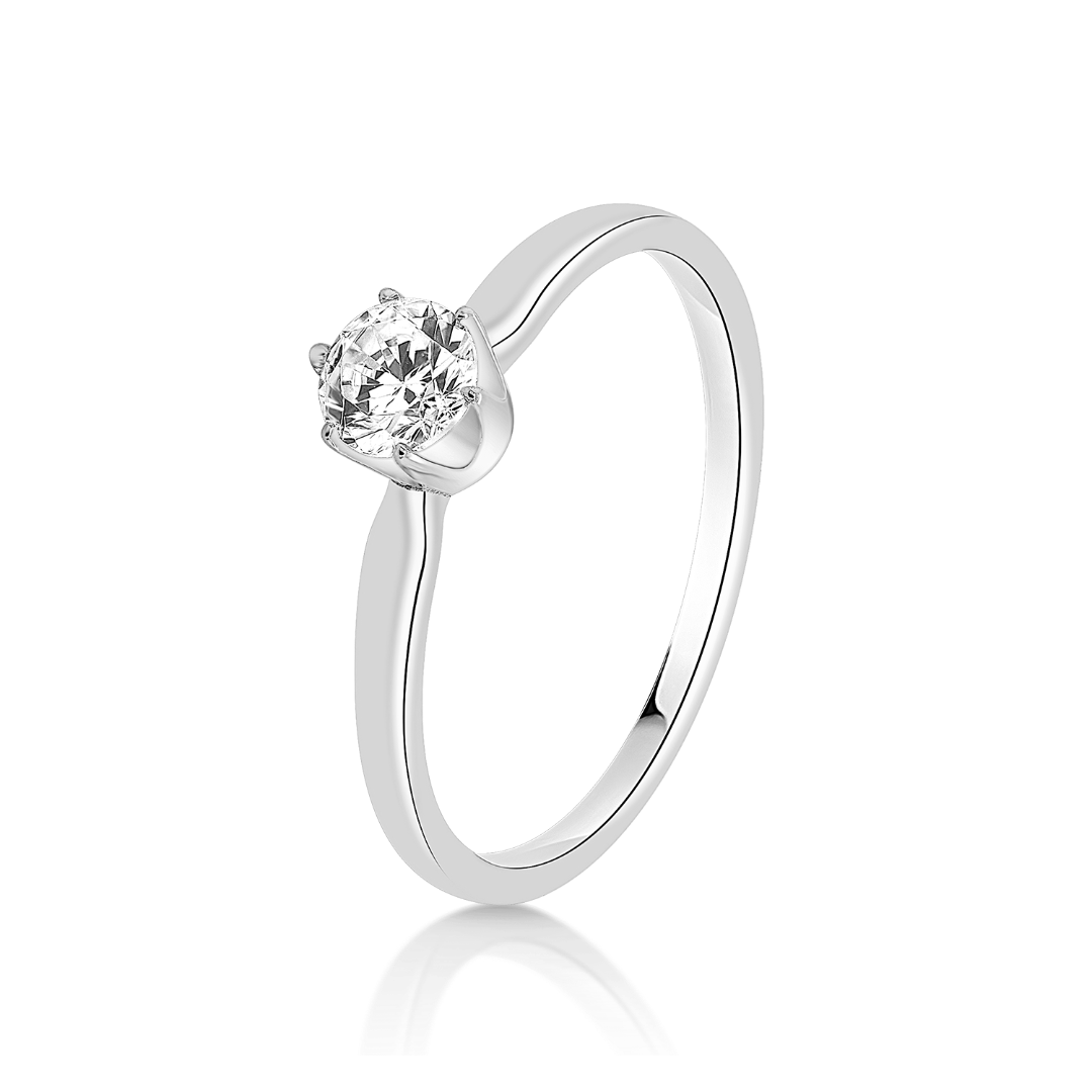 Inel de logodnă din aur alb de 18K cu un Diamant natural brilliant cut.