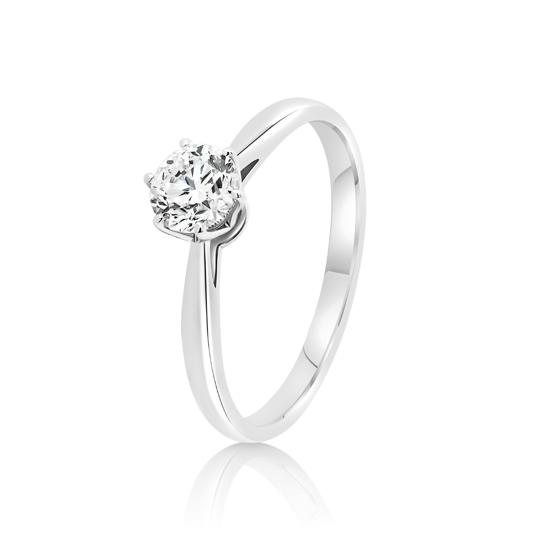 Inel de logodnă din aur alb de 18K cu un Diamant natural certificat la Institutul Gemologic GIA cu numărul 2518226913.