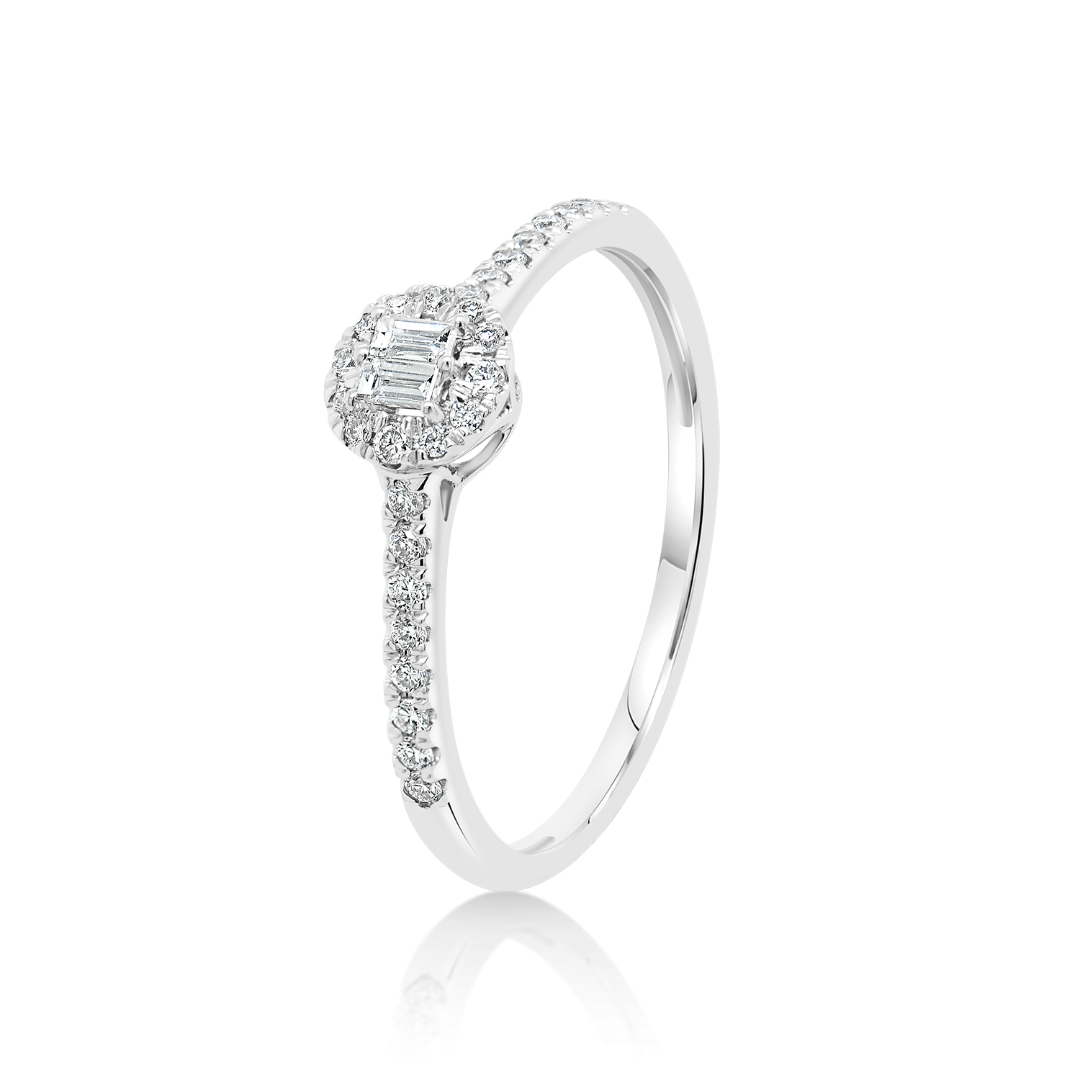 Inel de logodnă din aur alb de 18K încrustat cu Diamante naturale.