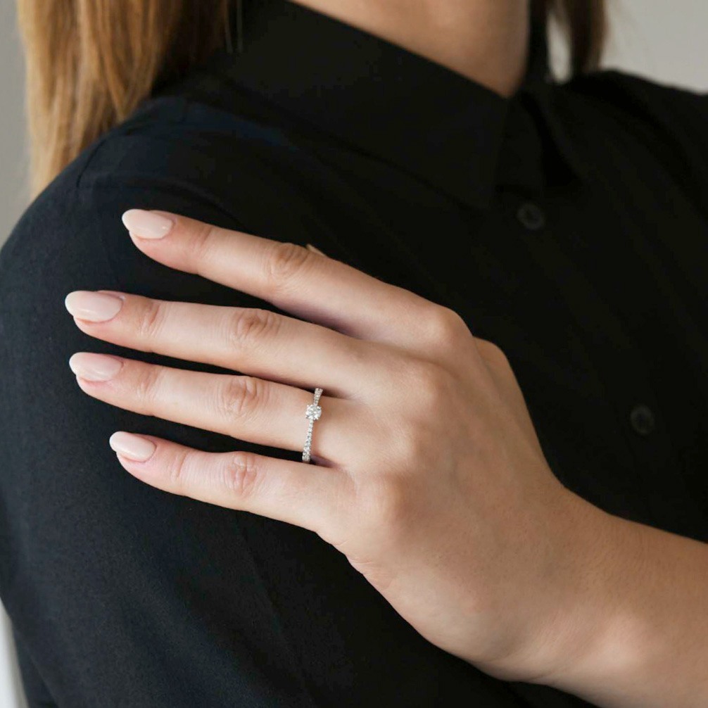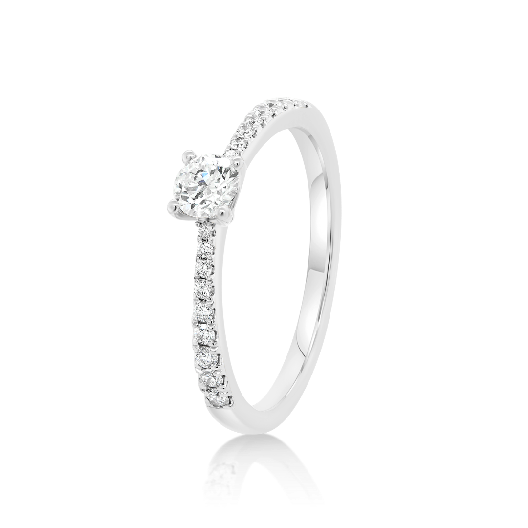 Inel de logodnă din aur alb de 18K cu Diamante naturale Round Brilliant.