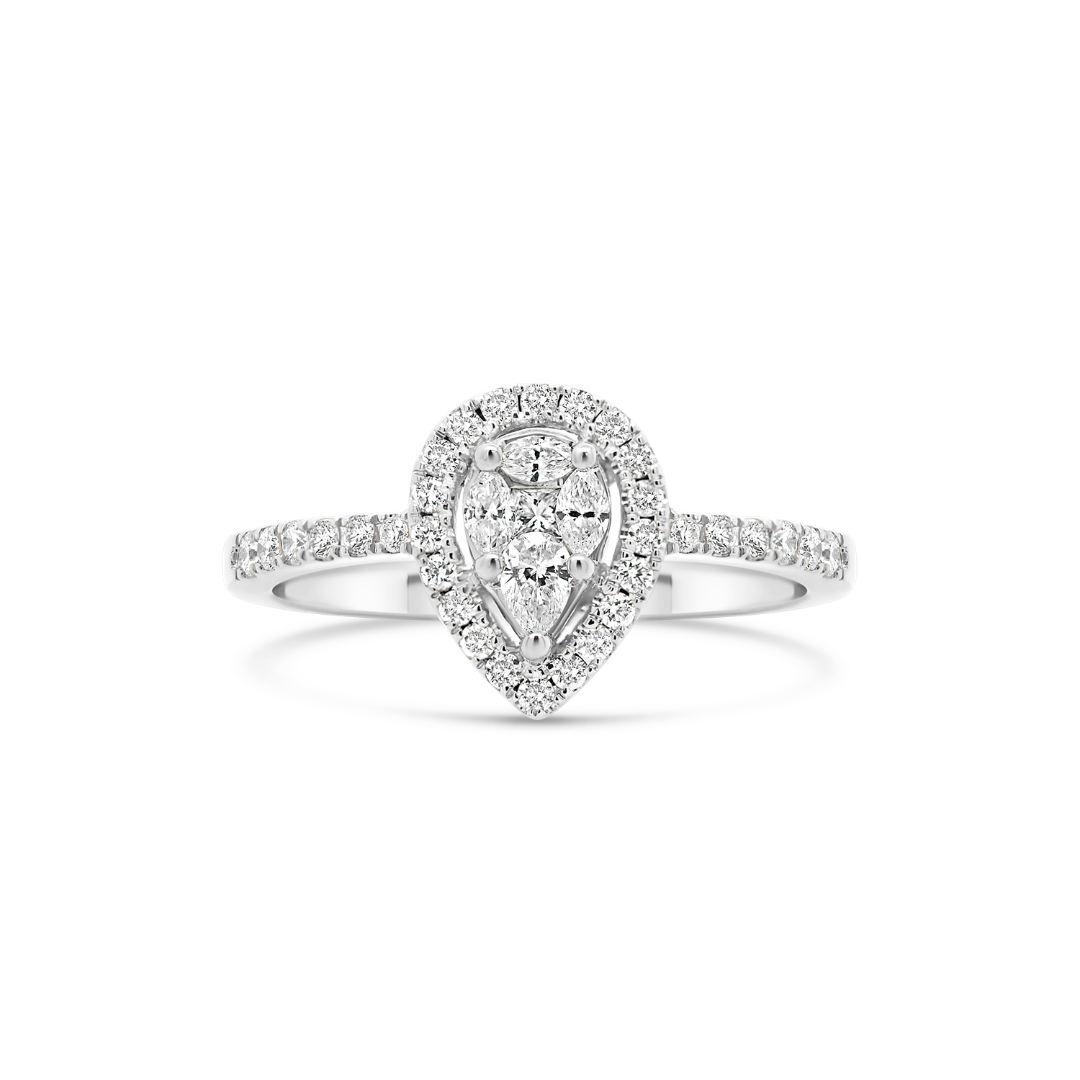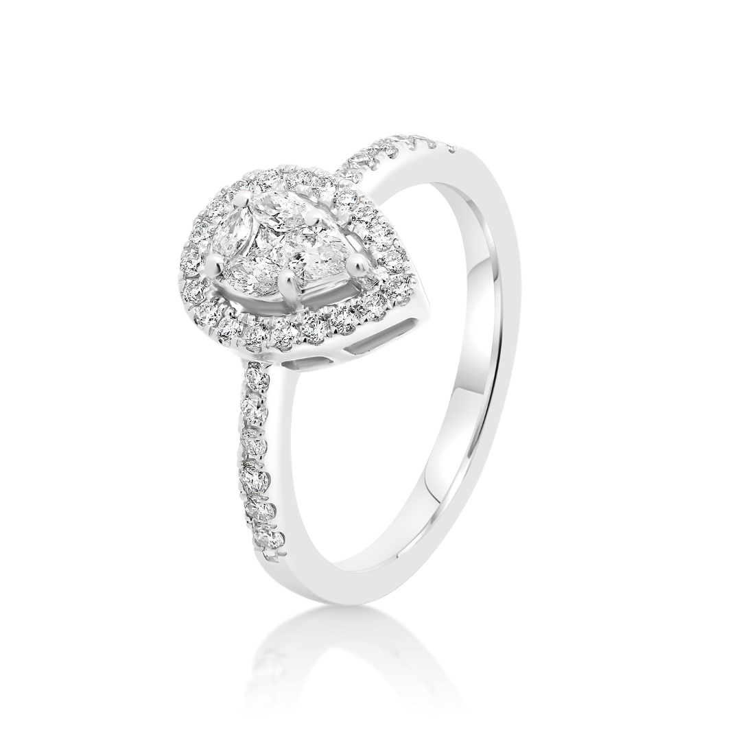 Inel de logodnă din aur alb de 18K cu Diamante Princess, Pear, Marquise și Briliant cut.